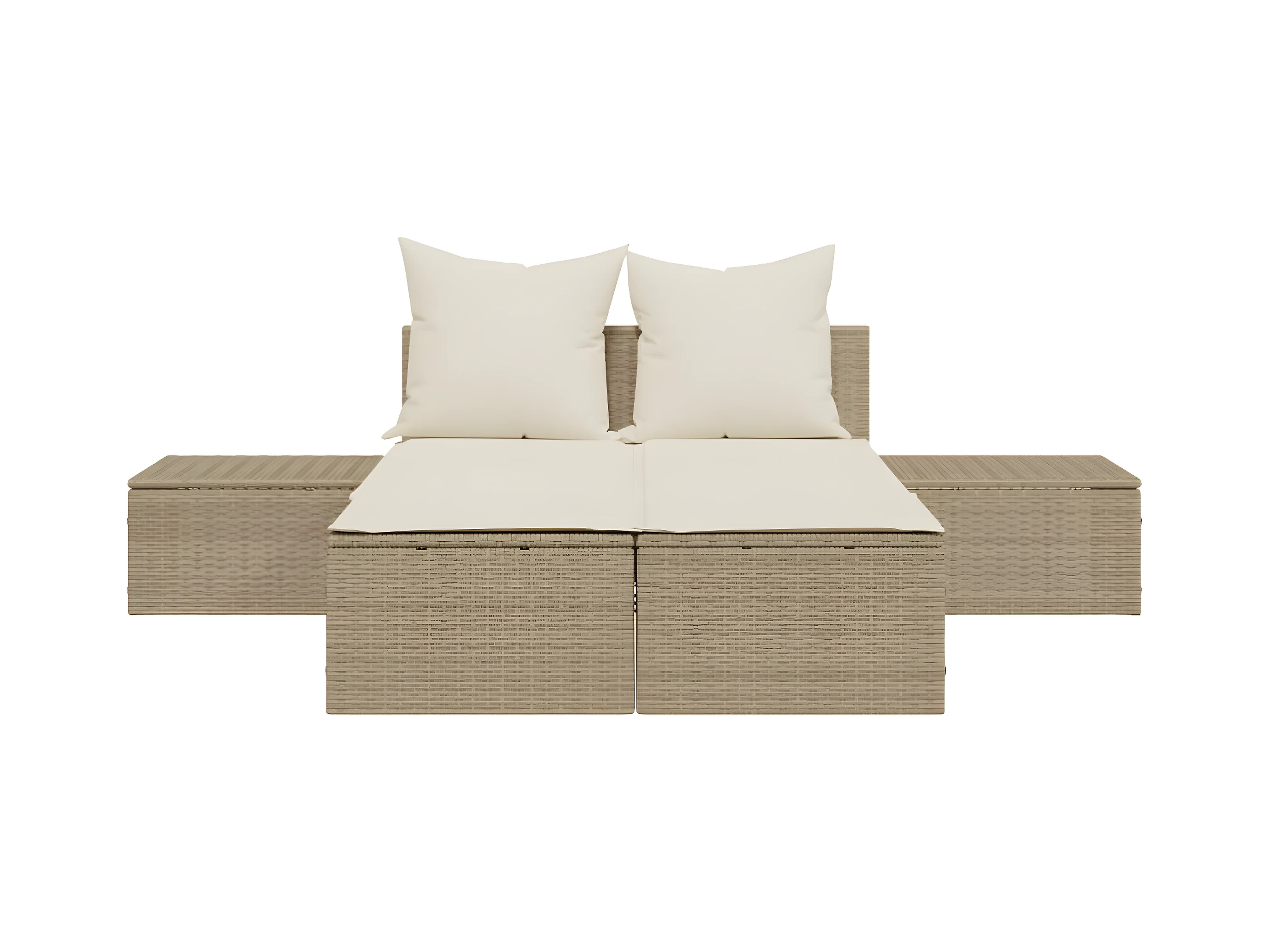 Tumbona doble con cojines y sombrilla ratán sintético beige ES263910