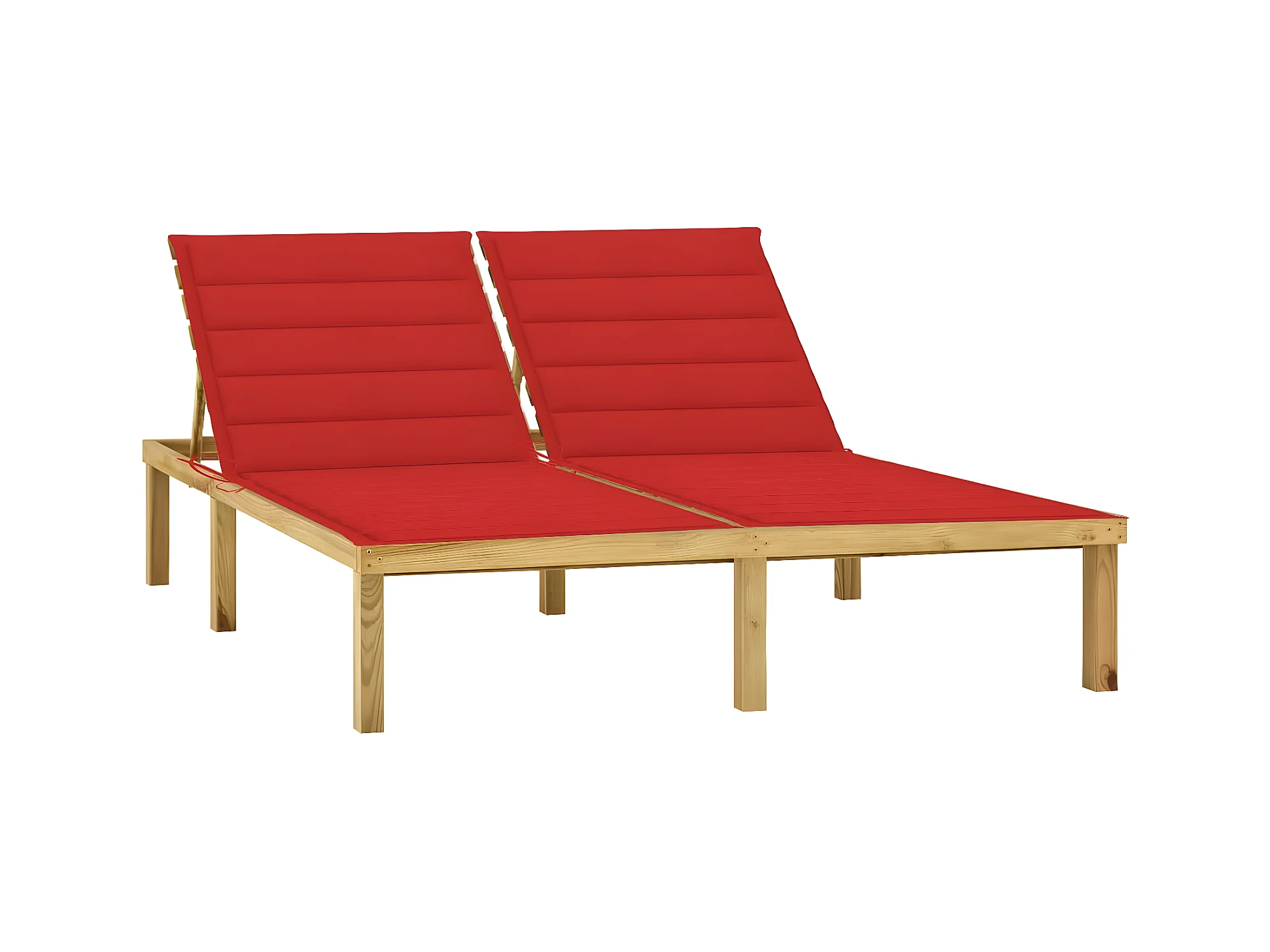Tumbona con cojín rojo madera de pino impregnada ES79425