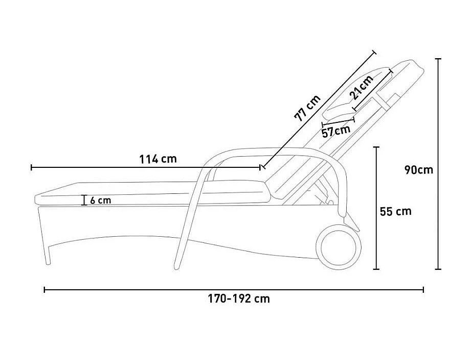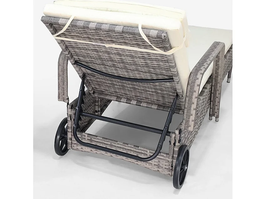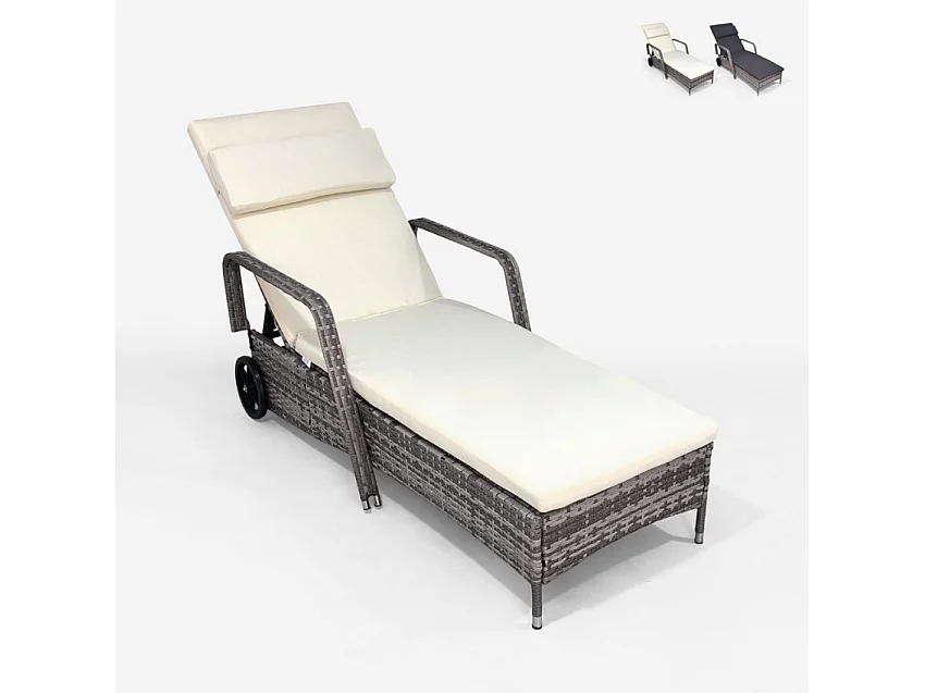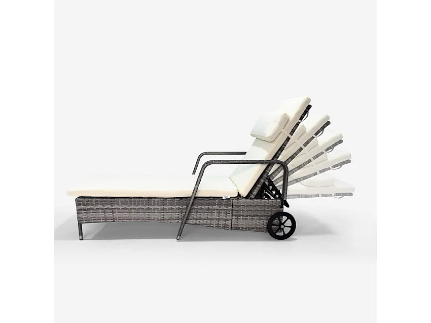 Tumbona para jardín y piscina de ratán con ruedas y reposabrazos Kanani - Blanco