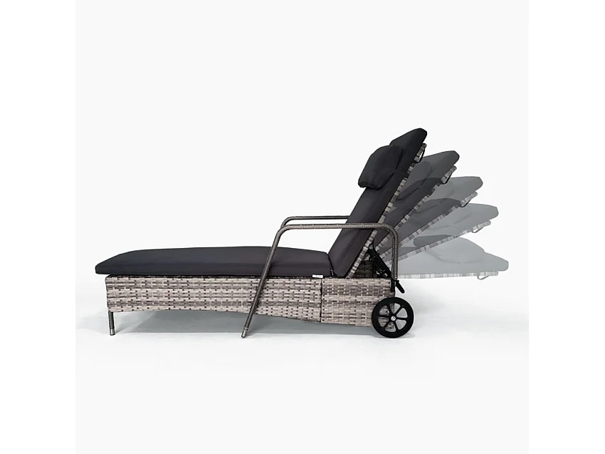 Tumbona para jardín y piscina de ratán con ruedas y reposabrazos Kanani - Gris