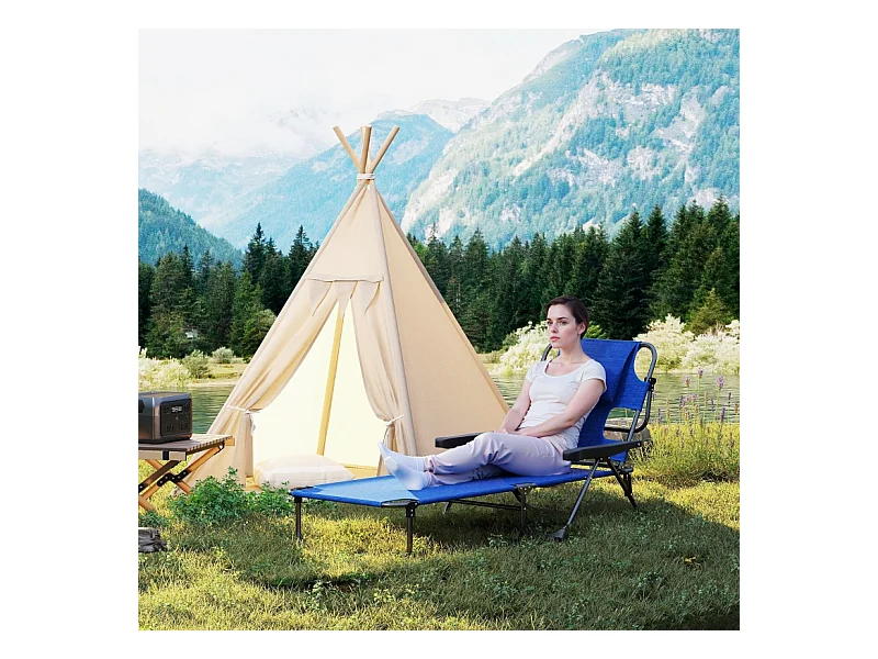 Tumbona plegable, regulable y resistente a la intemperie, de poliéster, color negro y azul oscuro (194x72x31 cm)