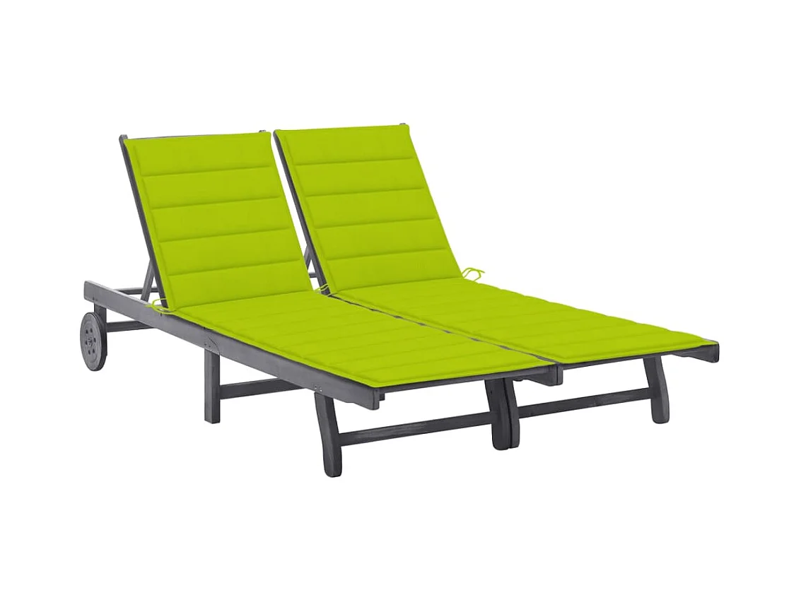 Tumbona tumbona tumbona cama de jardín terraza muebles de exterior de 2 plazas con cojín de acacia gris 02_0012229