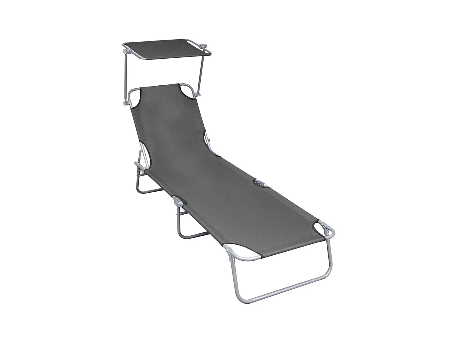 Tumbona tumbona tumbona cama de jardín terraza muebles de exterior plegables con toldo de aluminio gris 02_0012828