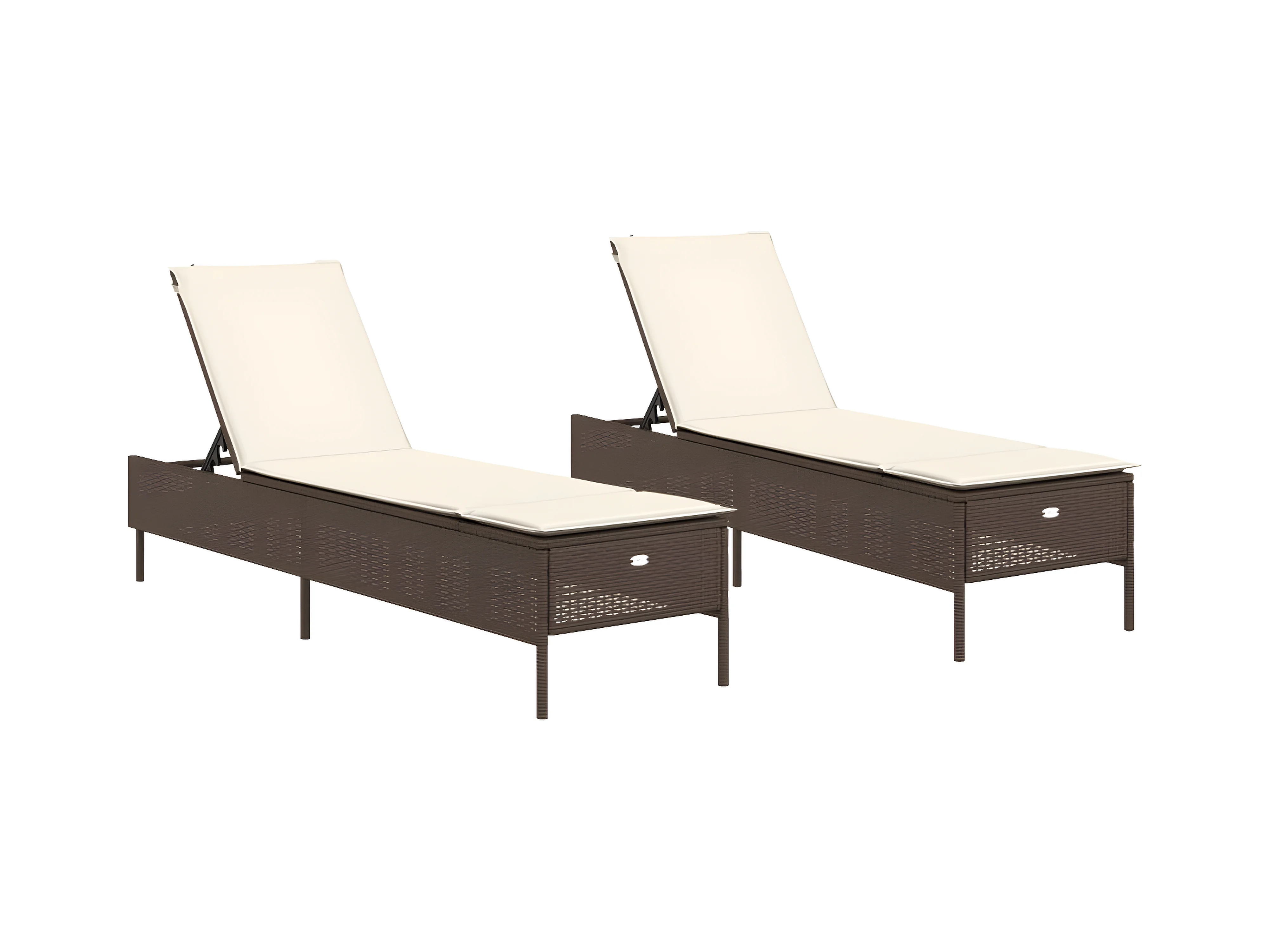 Tumbonas con cojines 2 unidades ratán sintético marrón ES863362