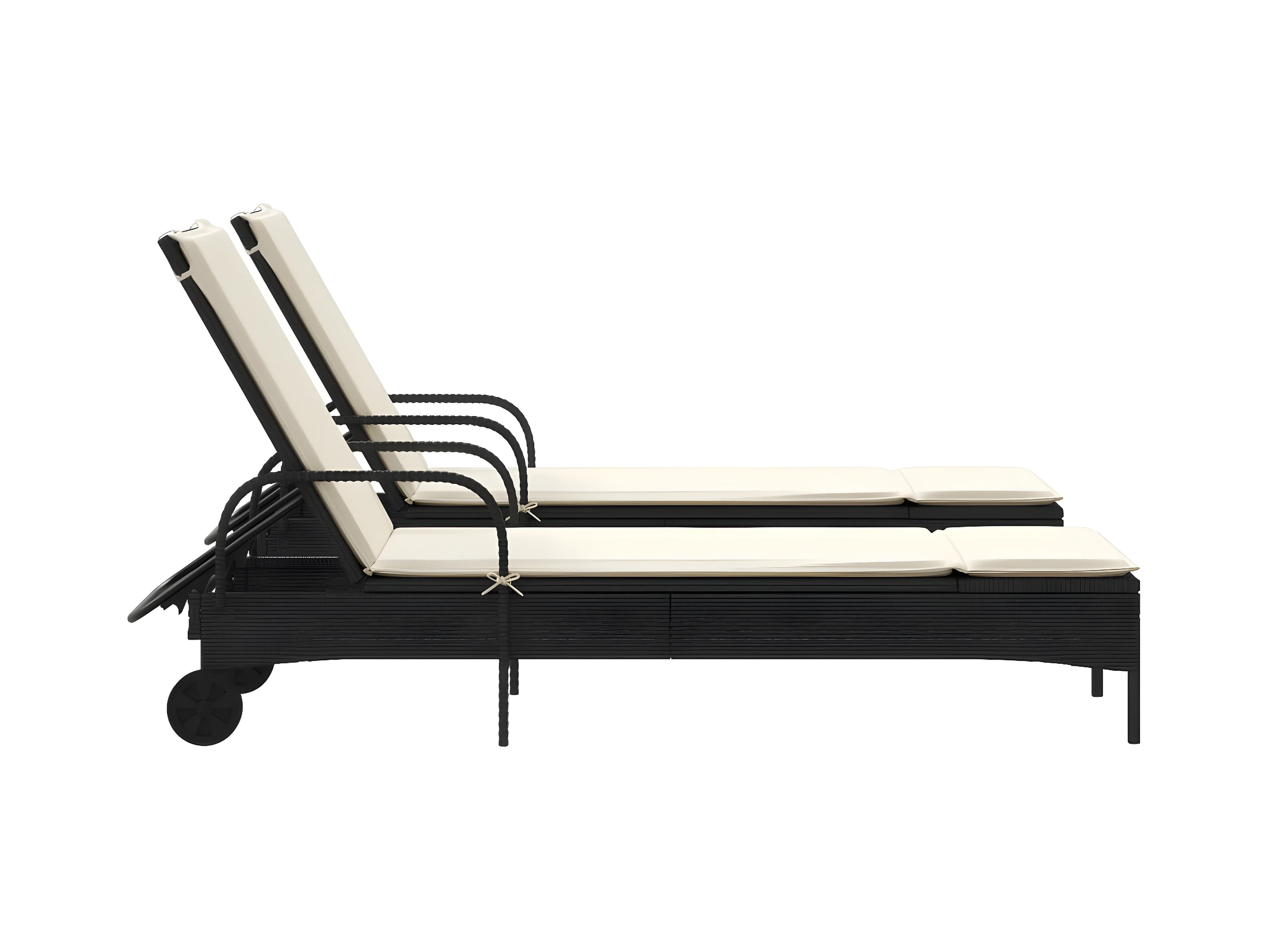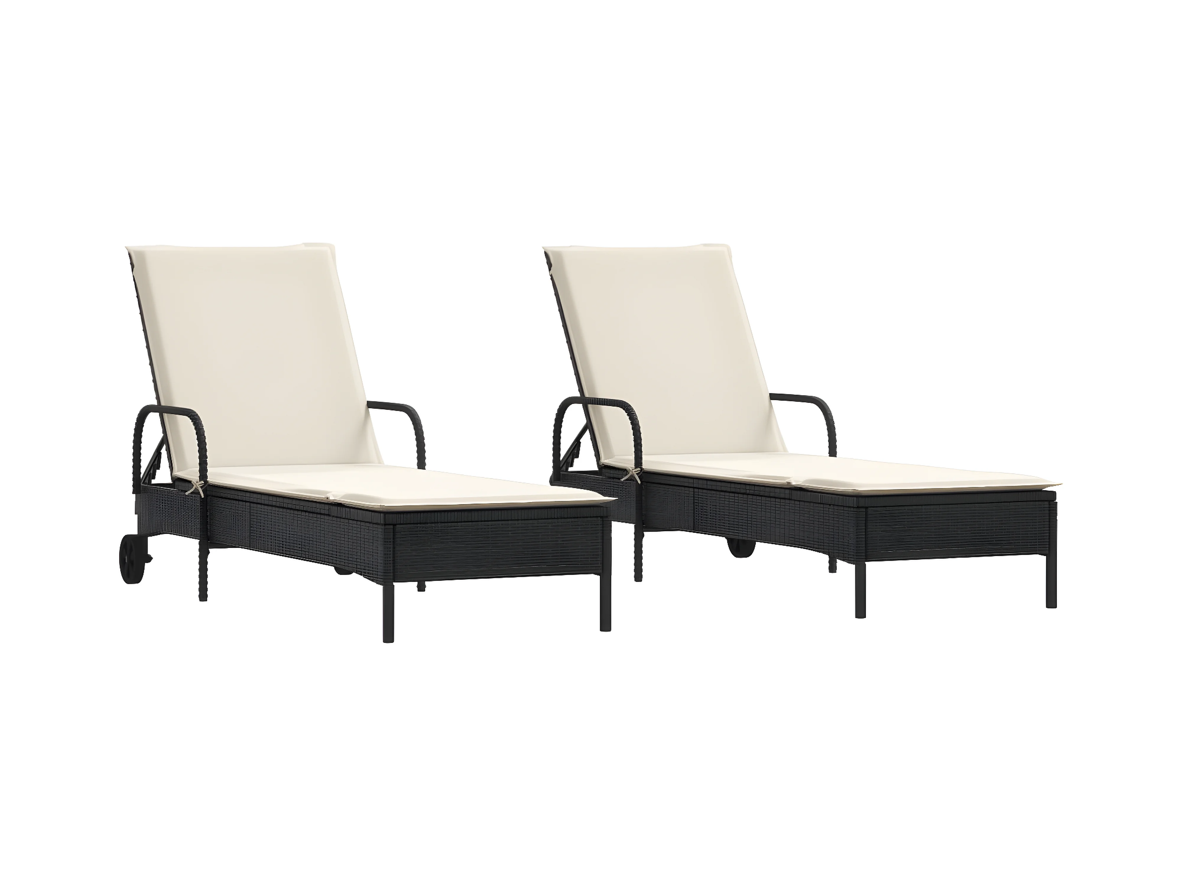 Tumbonas con cojines 2 unidades ratán sintético negro