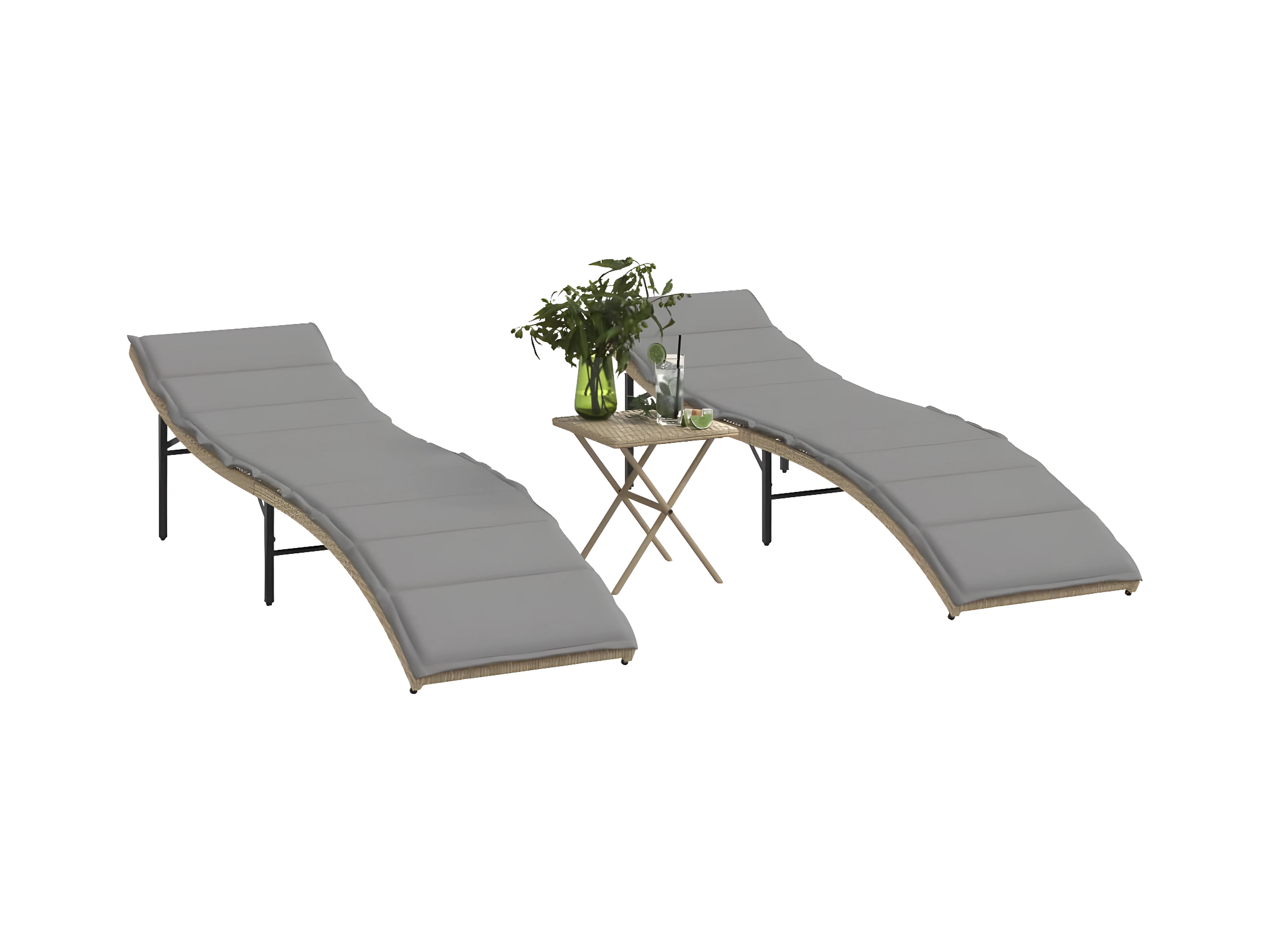 Tumbonas con mesita 2 unidades ratán sintético beige ES666593