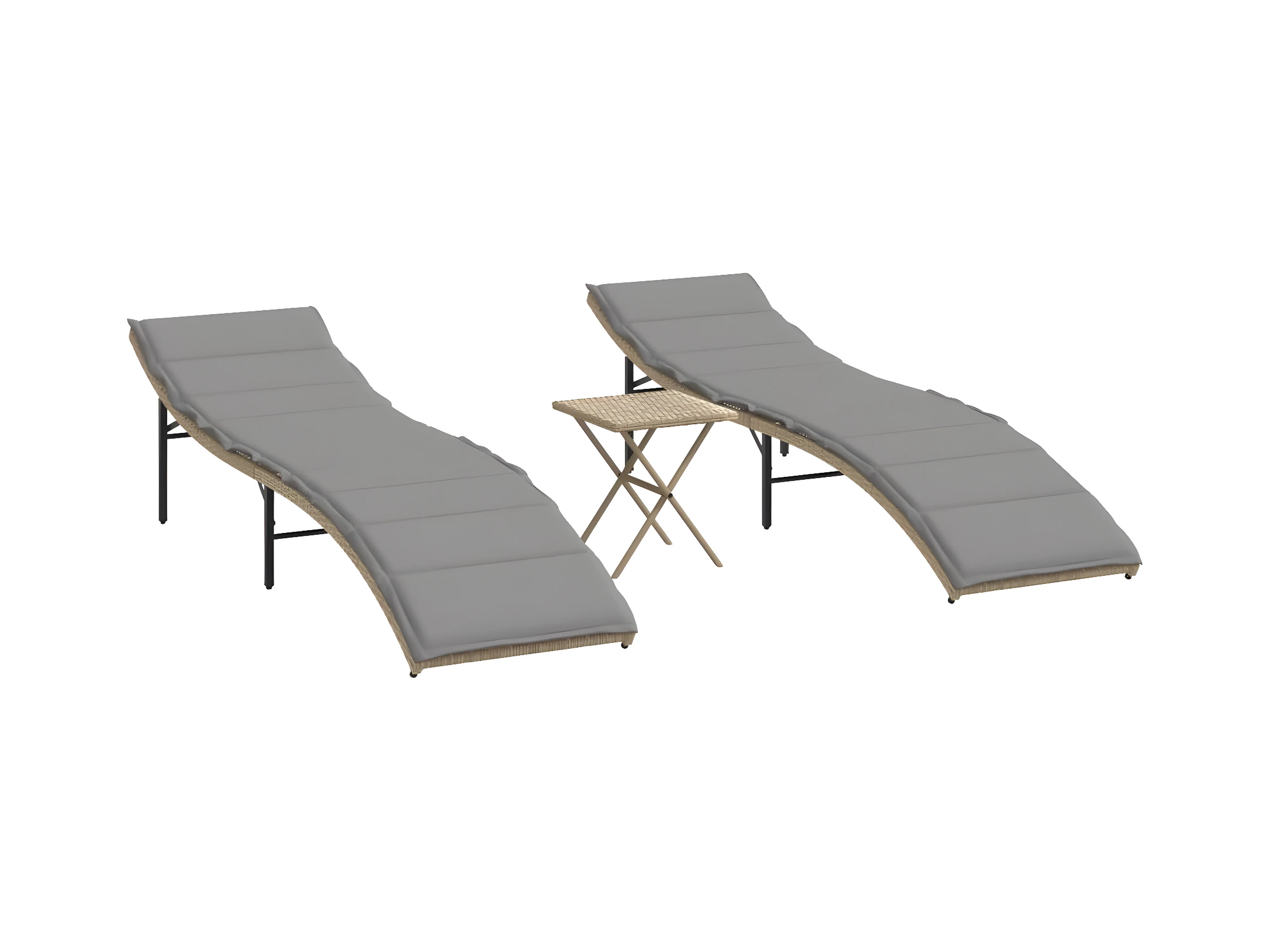 Tumbonas con mesita 2 unidades ratán sintético beige ES458642