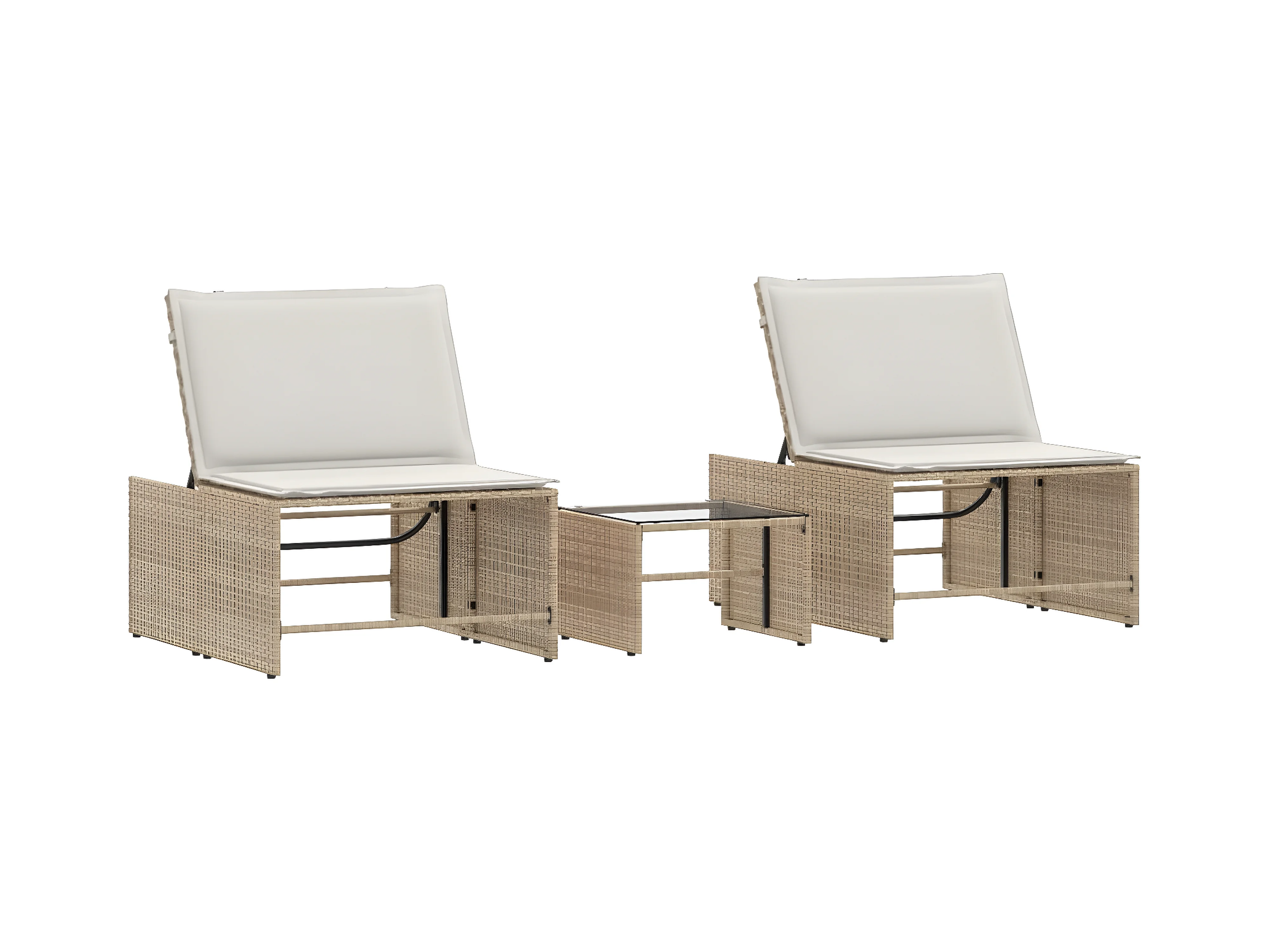 Tumbonas con mesita 2 unidades ratán sintético beige ES220077