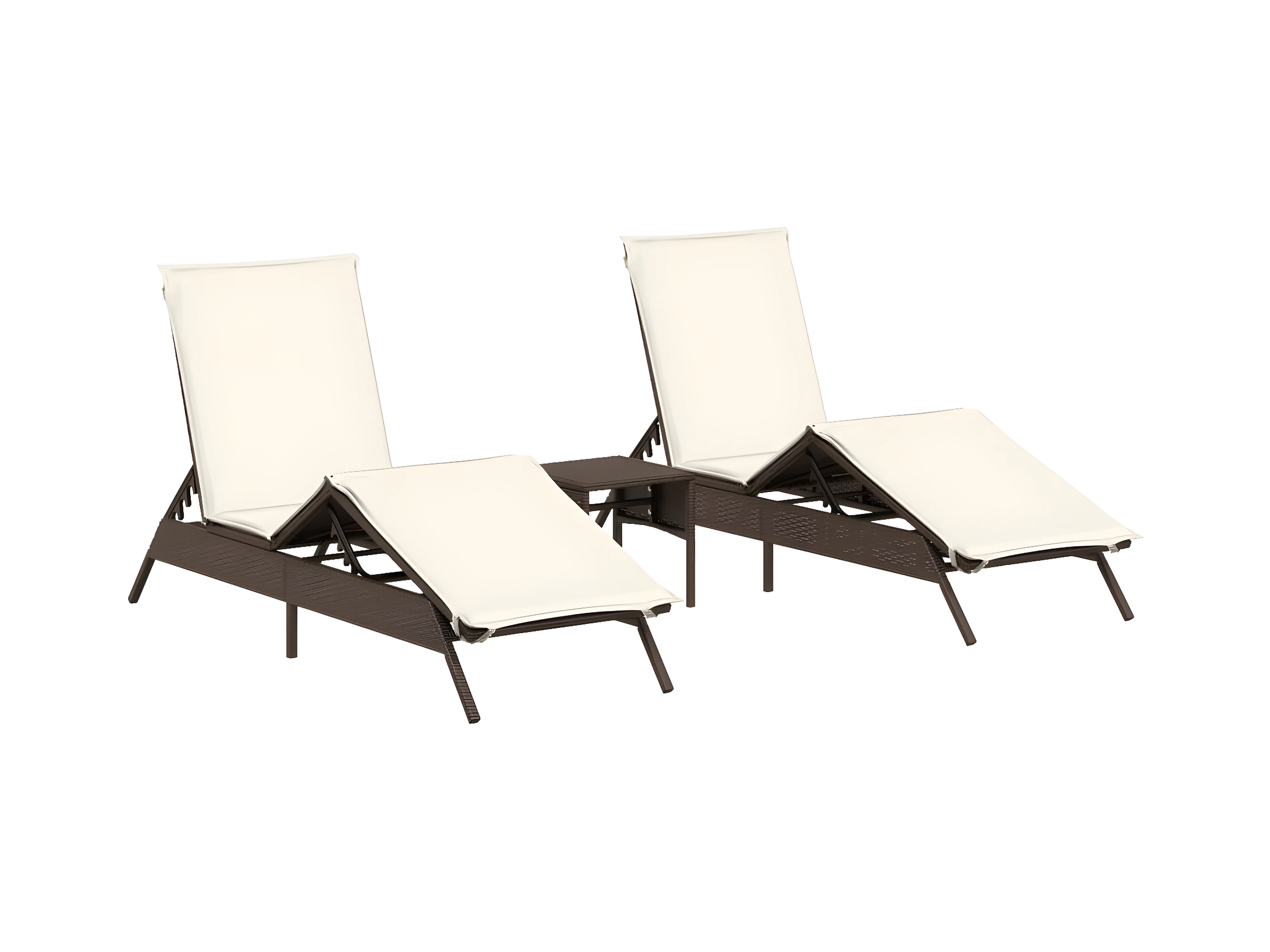 Tumbonas con mesita 2 unidades ratán sintético marrón ES502950