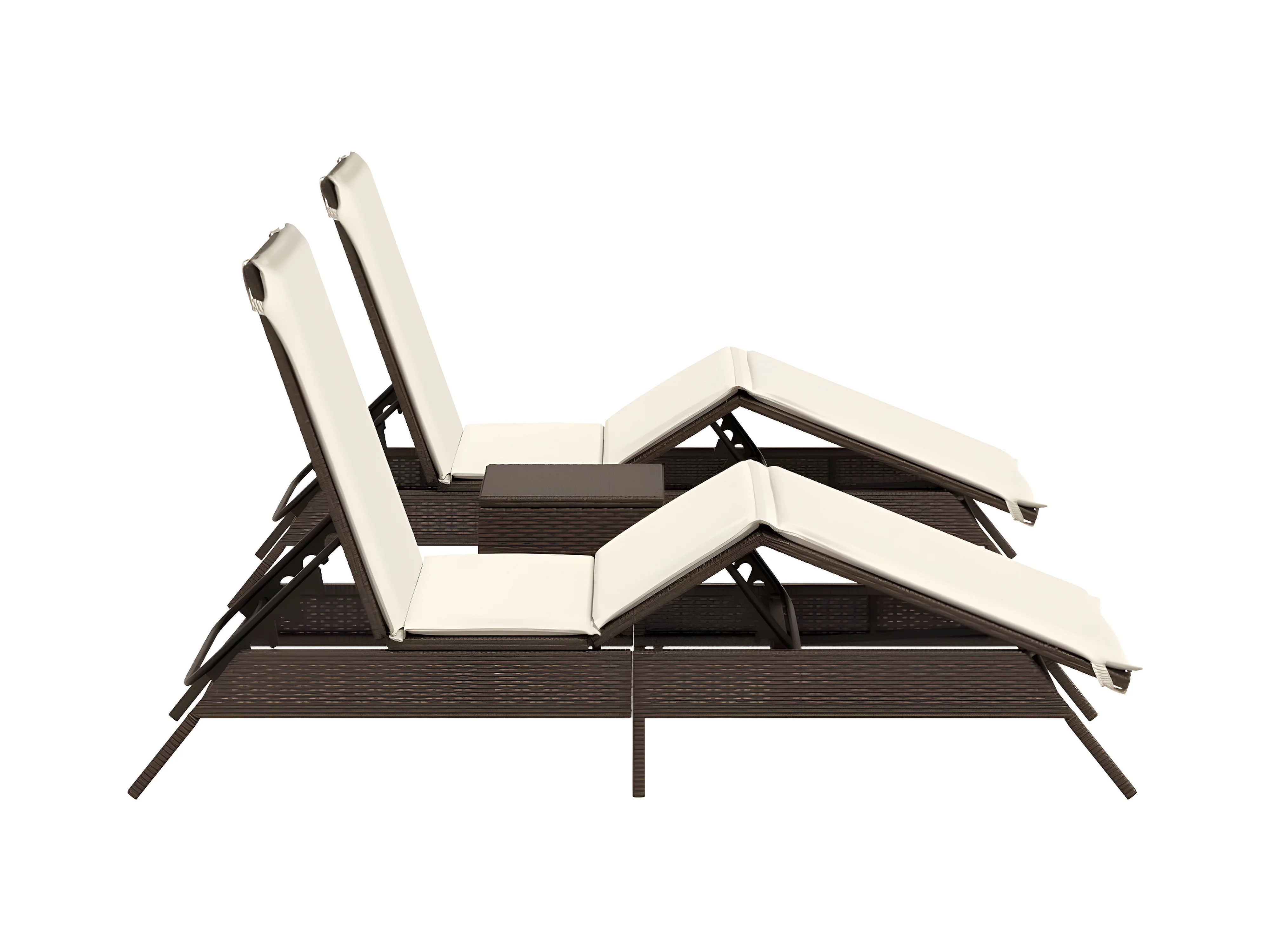 Juego de 2 tumbonas tumbona para tomar el sol cama de jardín terraza muebles de exterior con mesa de resina tejida marrón 02_0012129
