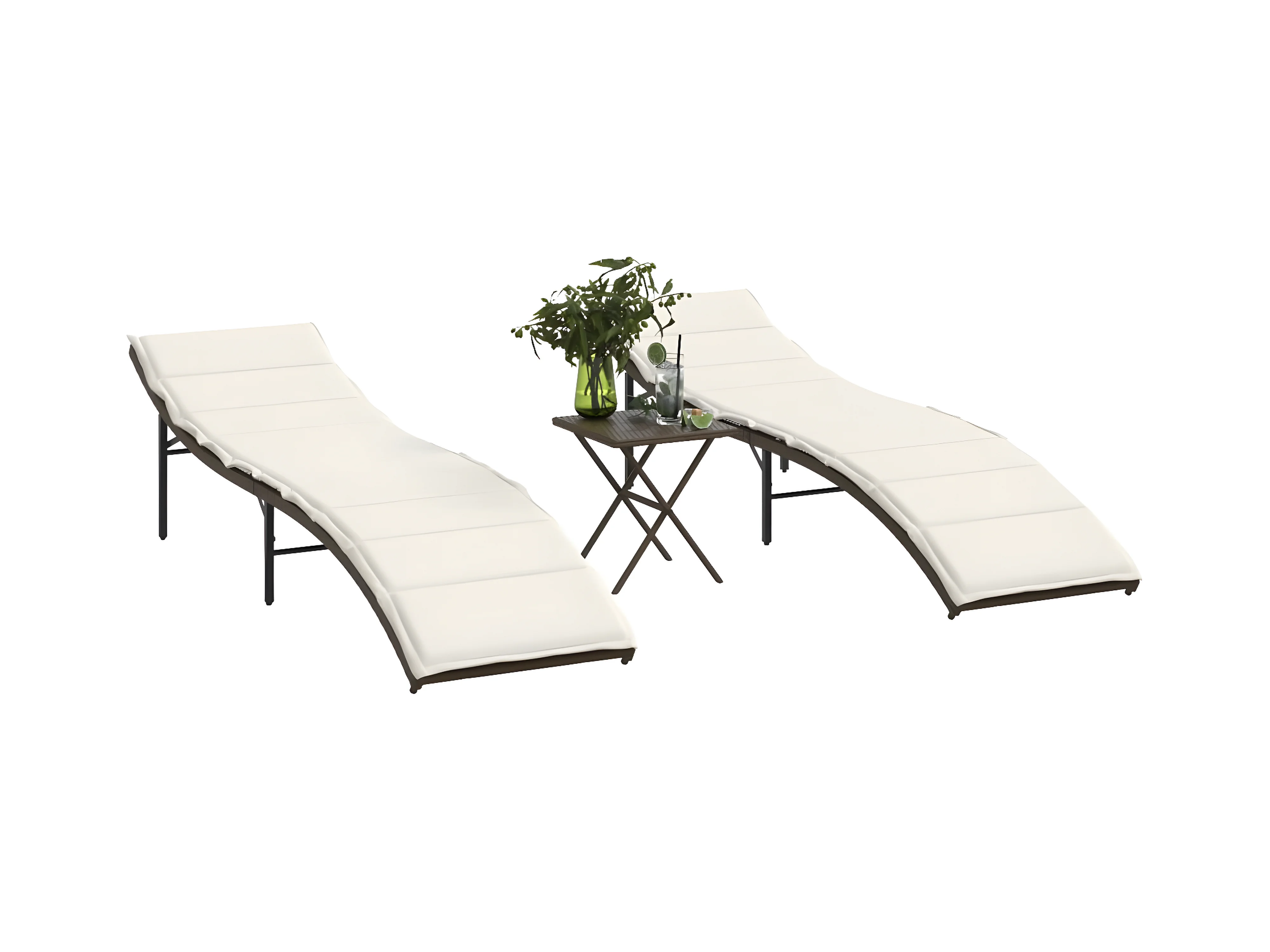 Tumbonas con mesita 2 unidades ratán sintético marrón ES322664