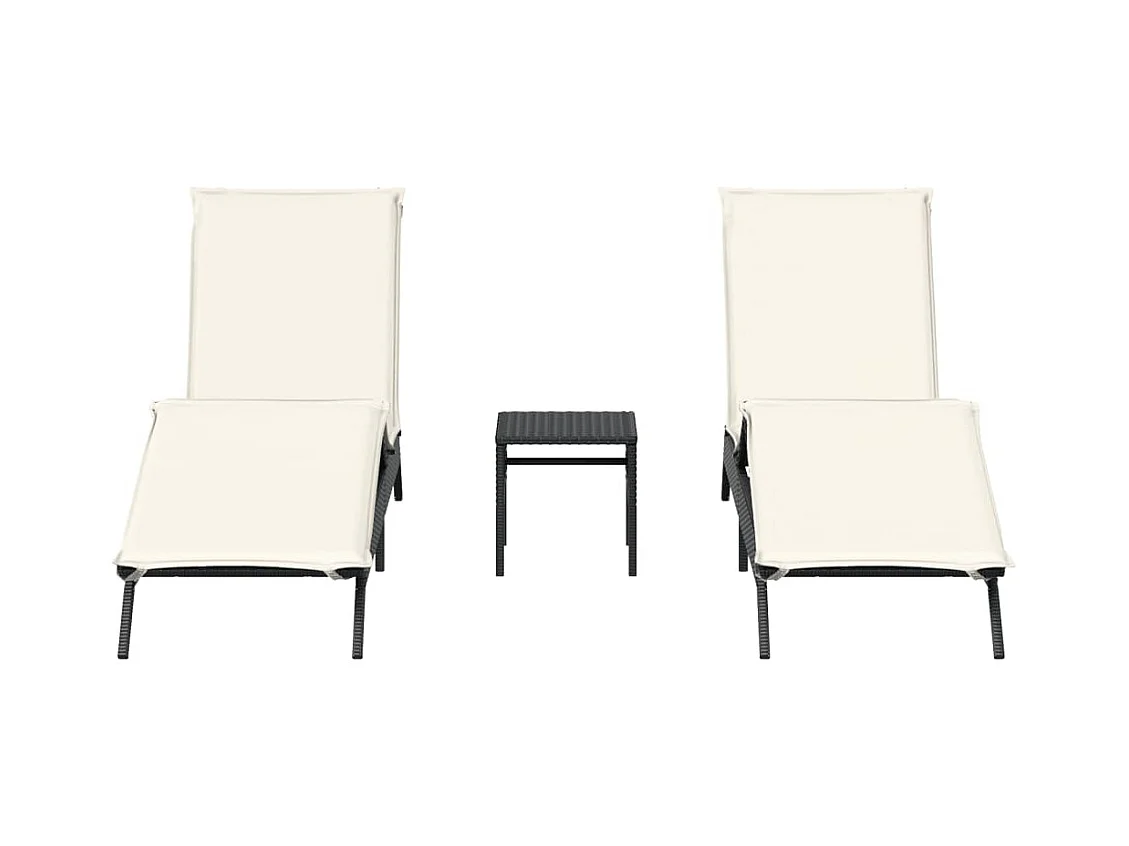 Tumbonas con mesita 2 unidades ratán sintético negro