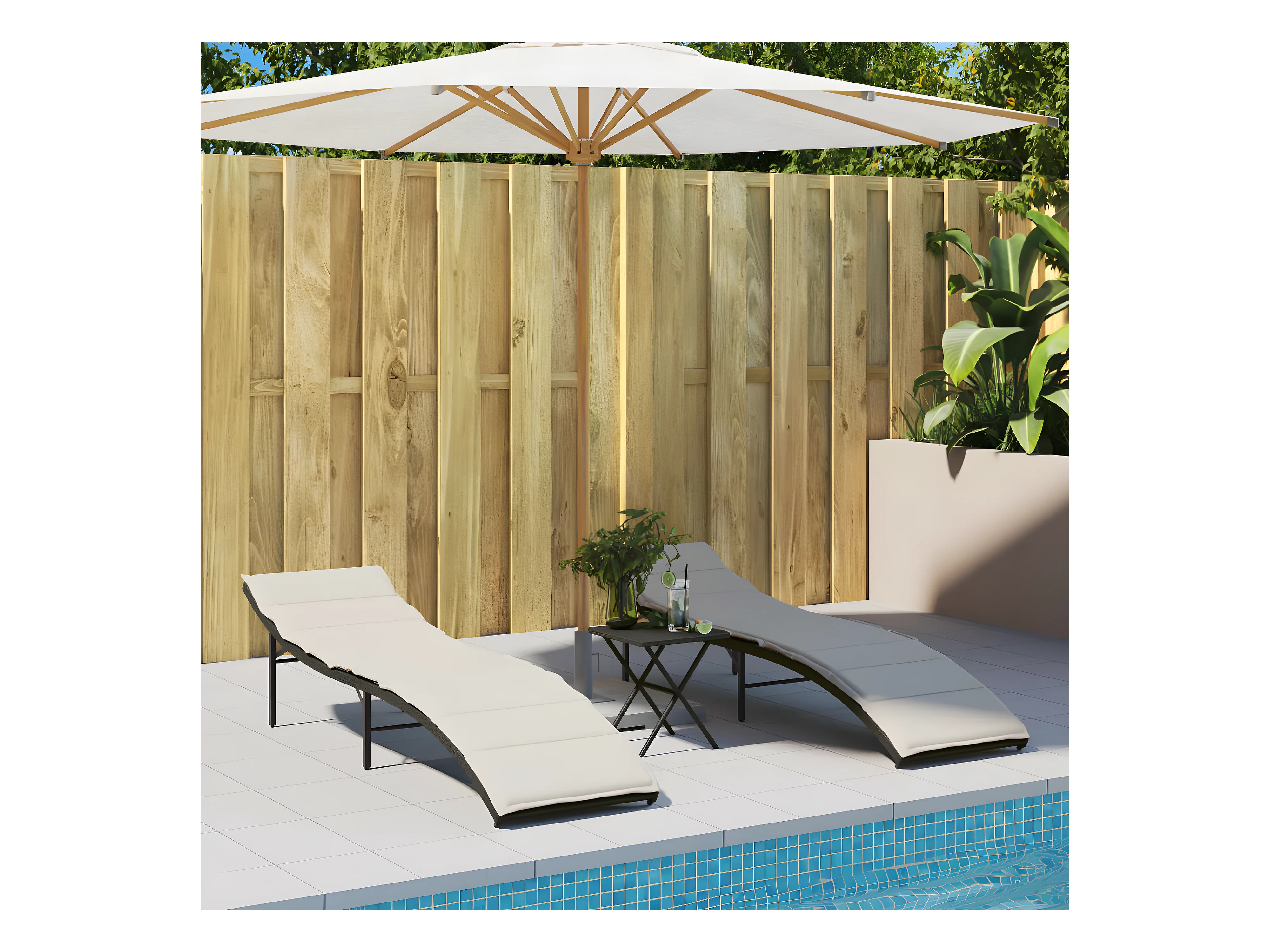 Tumbonas con mesita 2 unidades ratán sintético negro ES660688