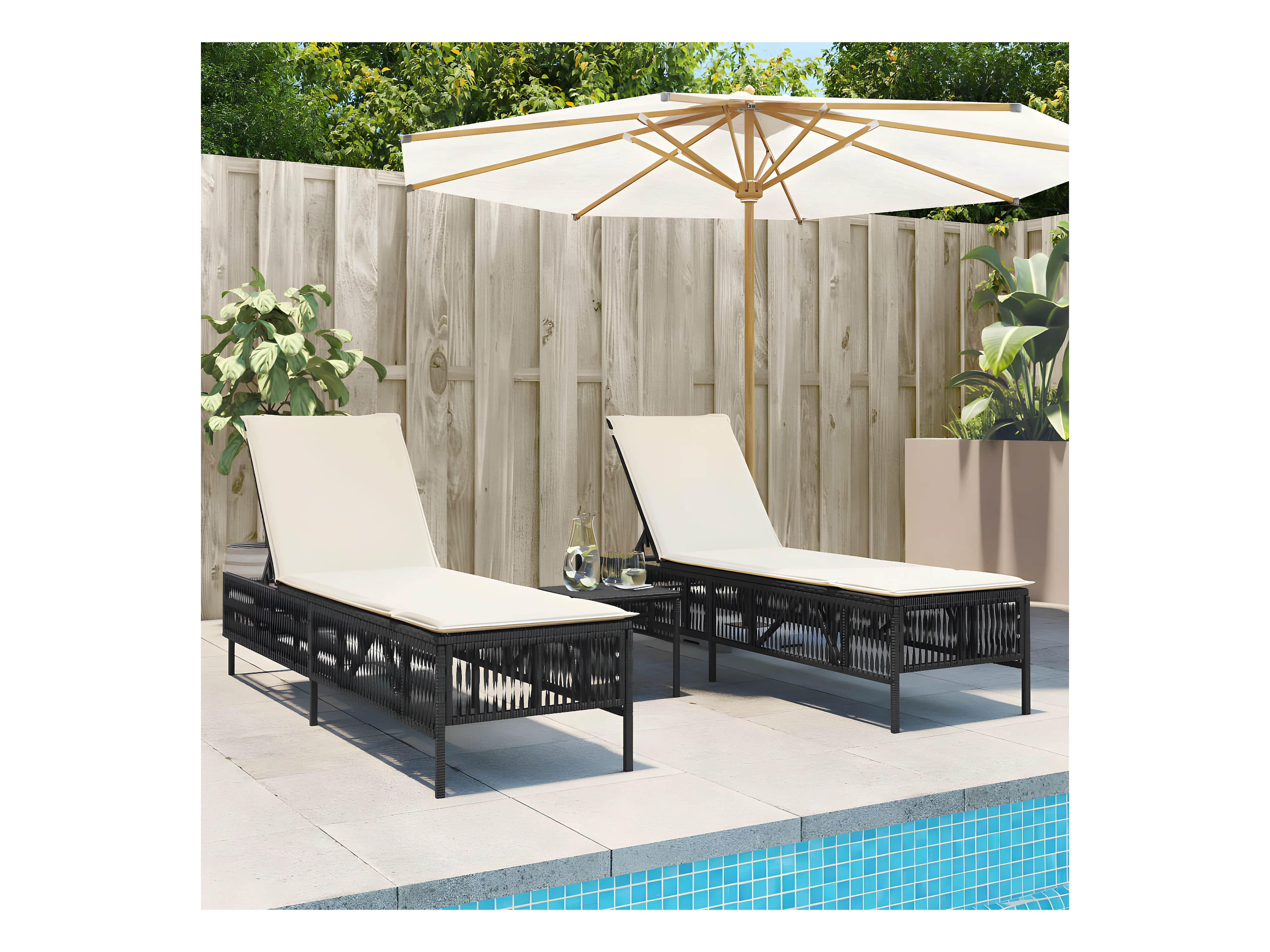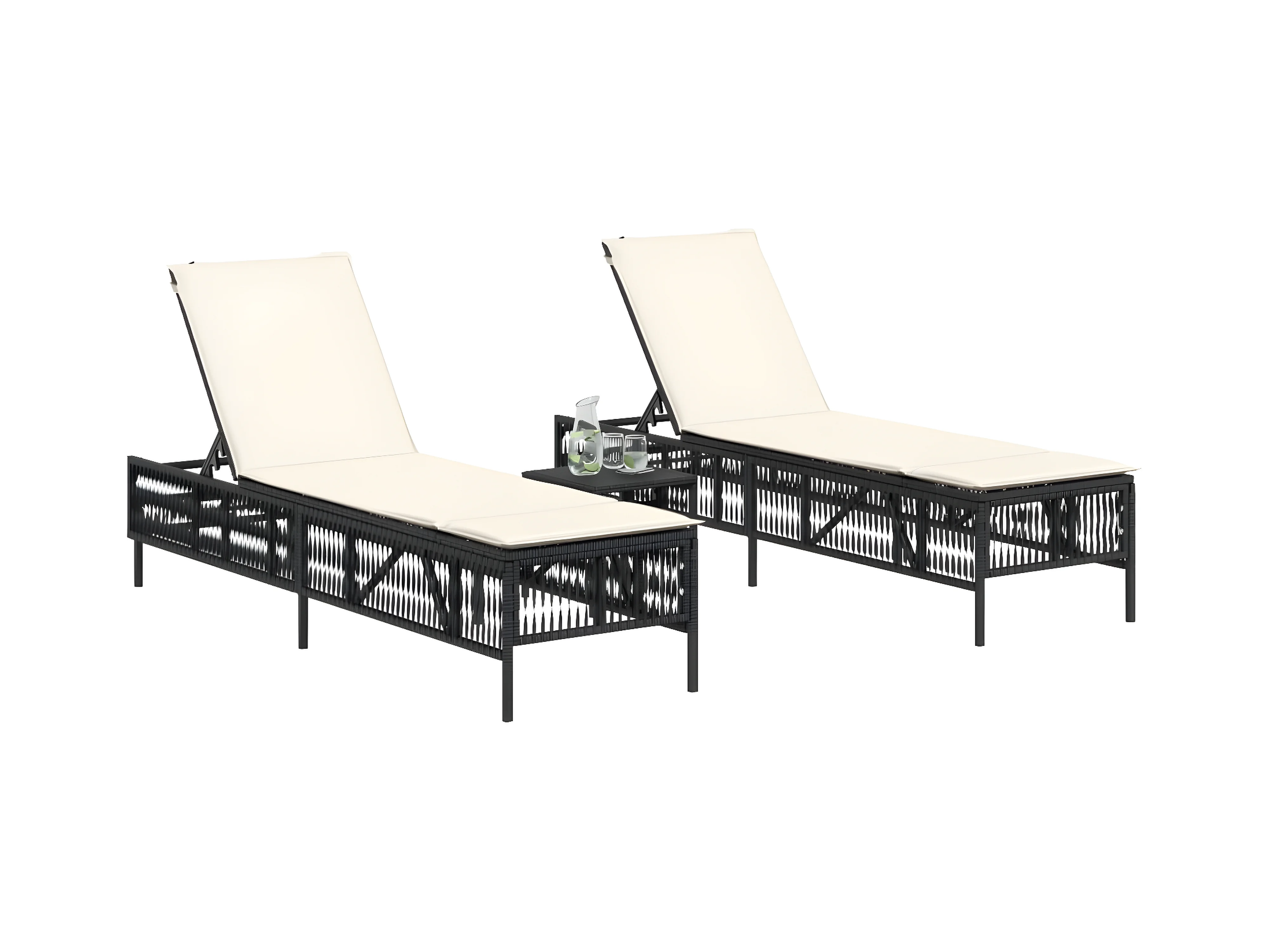 Tumbonas con mesita 2 unidades ratán sintético negro ES660688