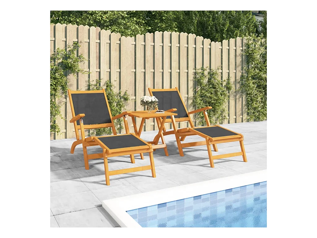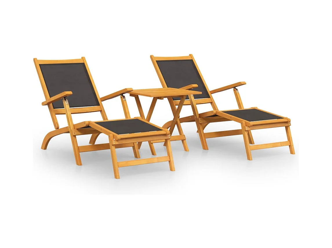 Tumbonas y mesa de exterior Acacia maciza y textileno.