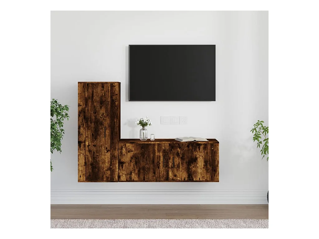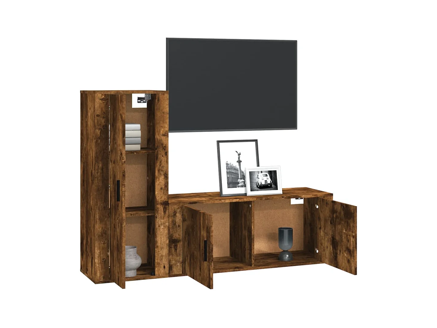 Xira Set de muebles de TV 3 pzas madera contrachapada roble ahumado