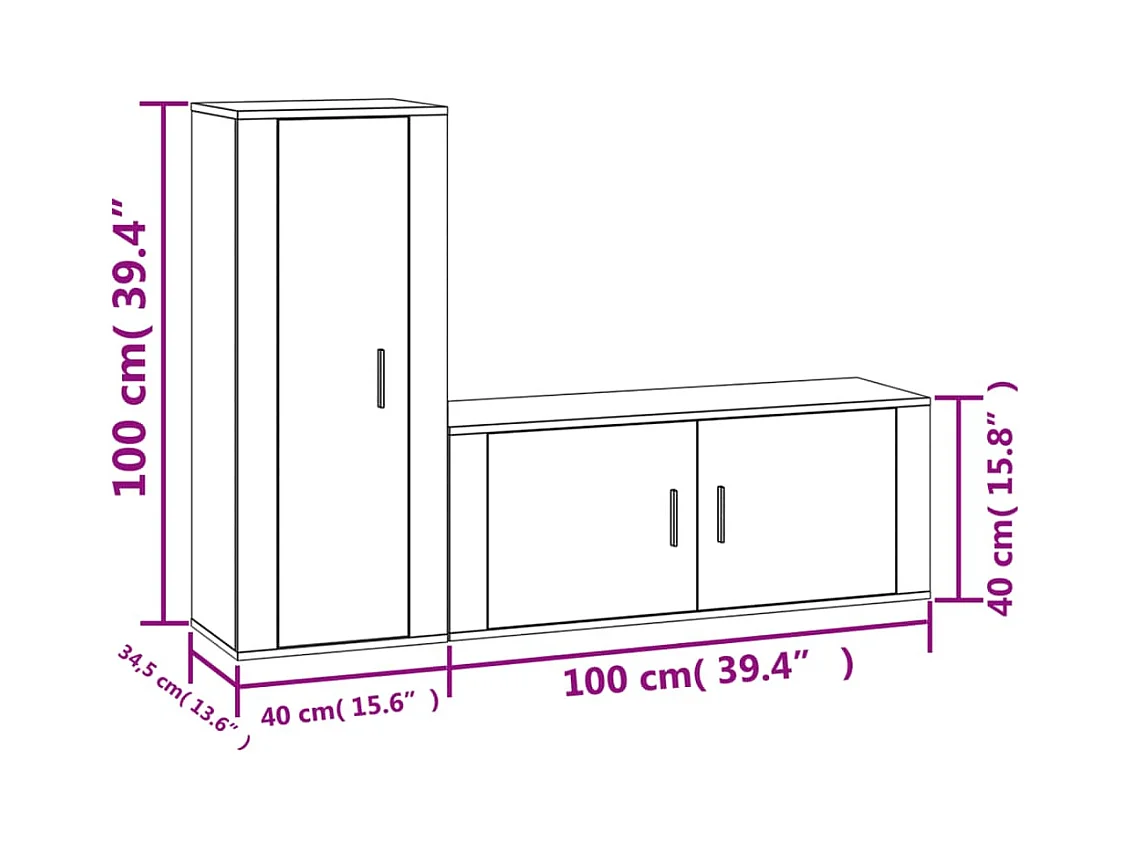 Marisa Set de muebles de TV 2 pzas madera contrachapada roble ahumado
