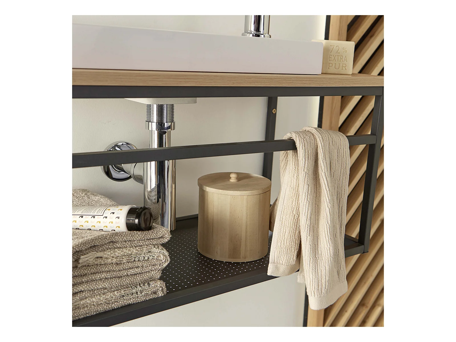 Conjunto de lavabo negro HAMPTON con almacenamiento lateral y estante de espejo