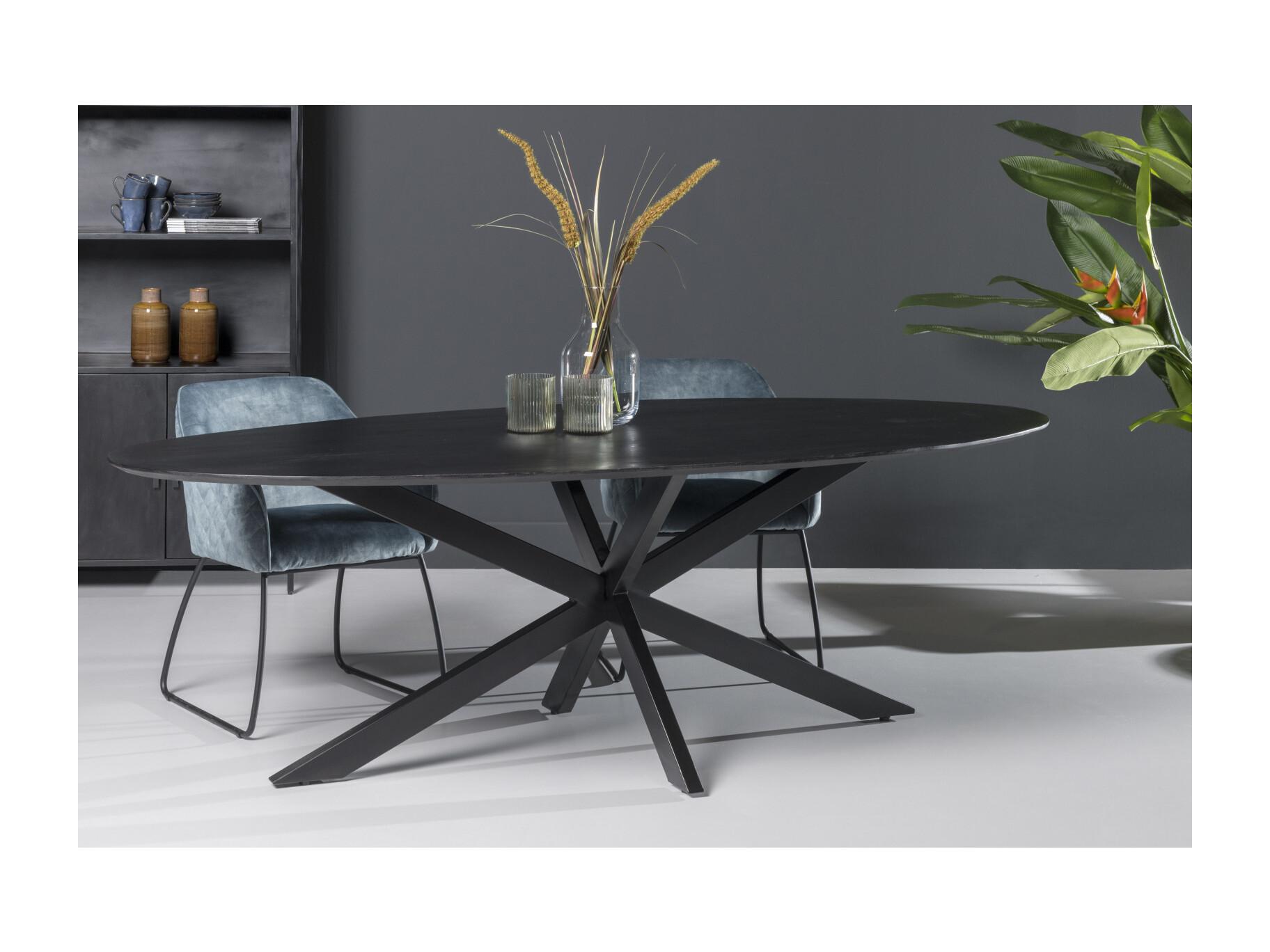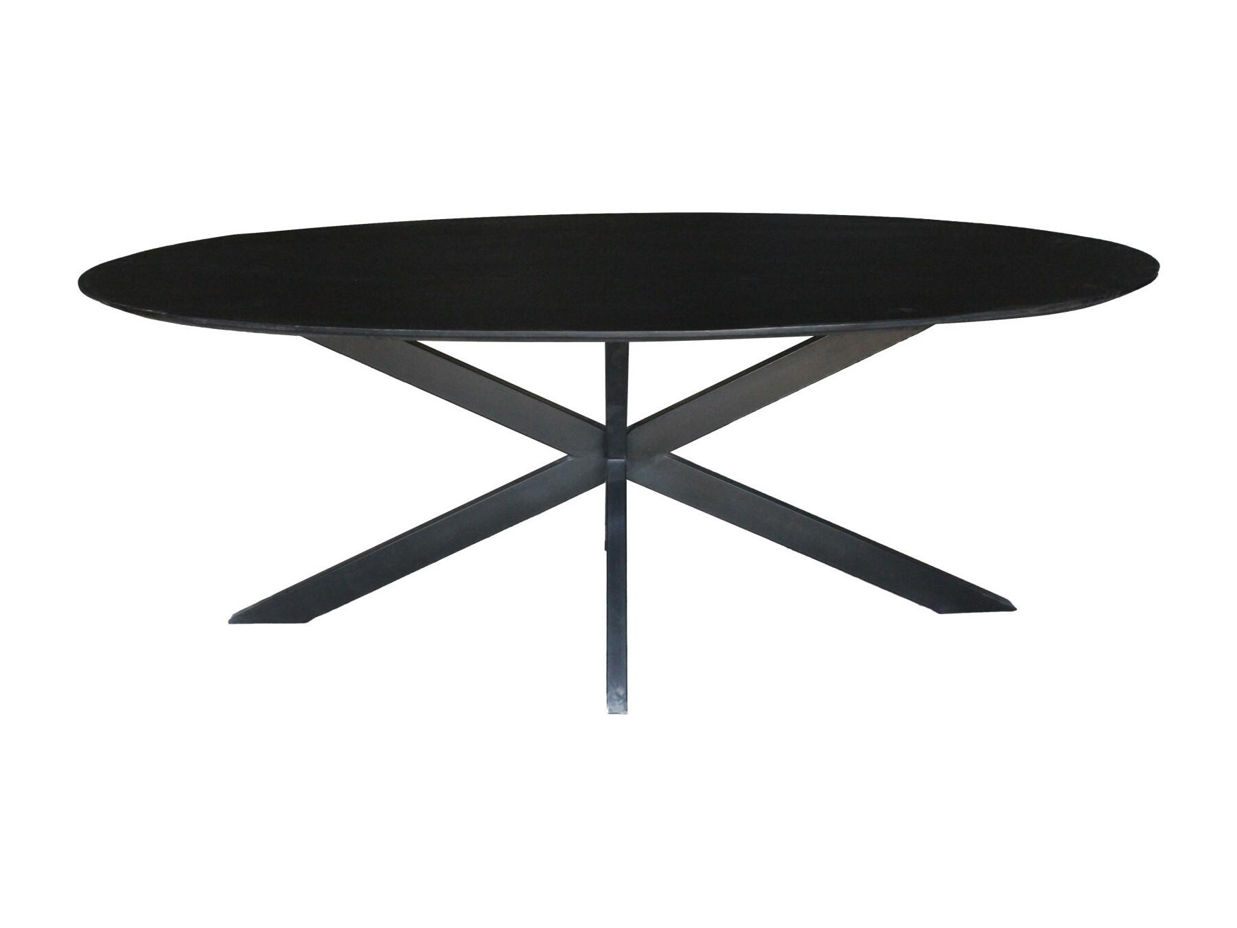 BARI-Mesa de comedor ovalada 8/10 p L.210 cm, madera de mango y metal negro