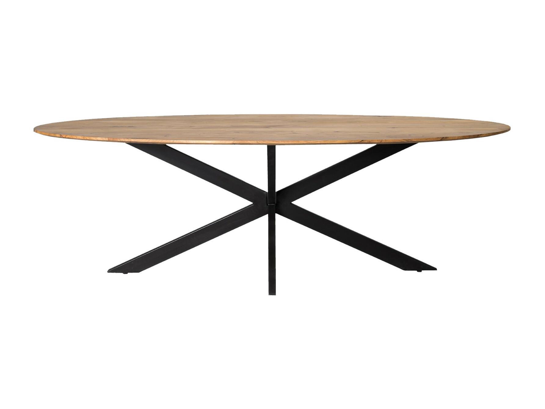 BARI-Mesa de comedor ovalada 8/10 p L.210 cm, madera de mango y metal negro