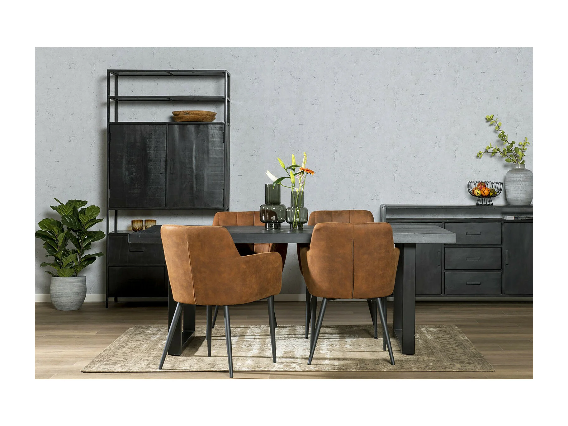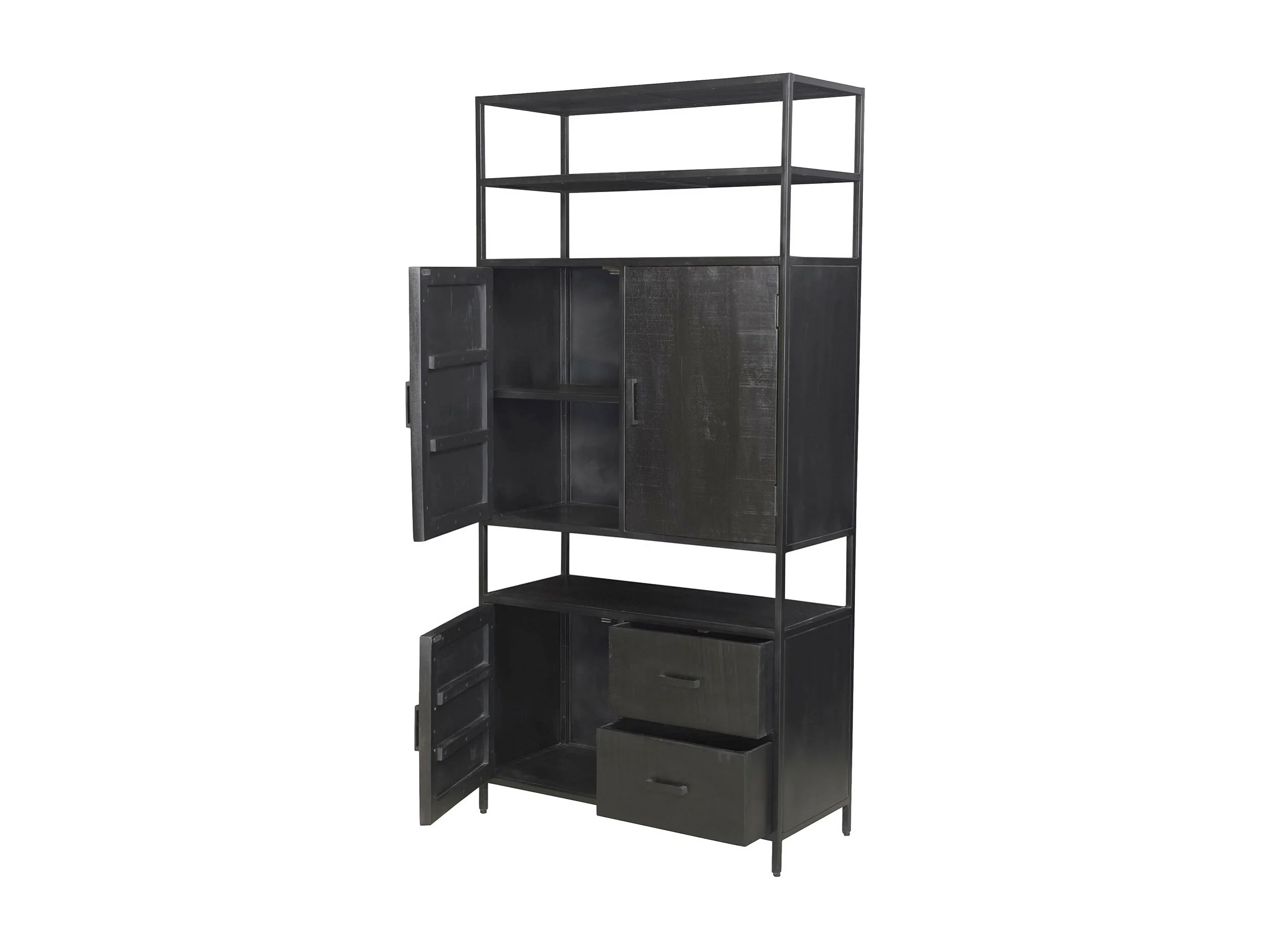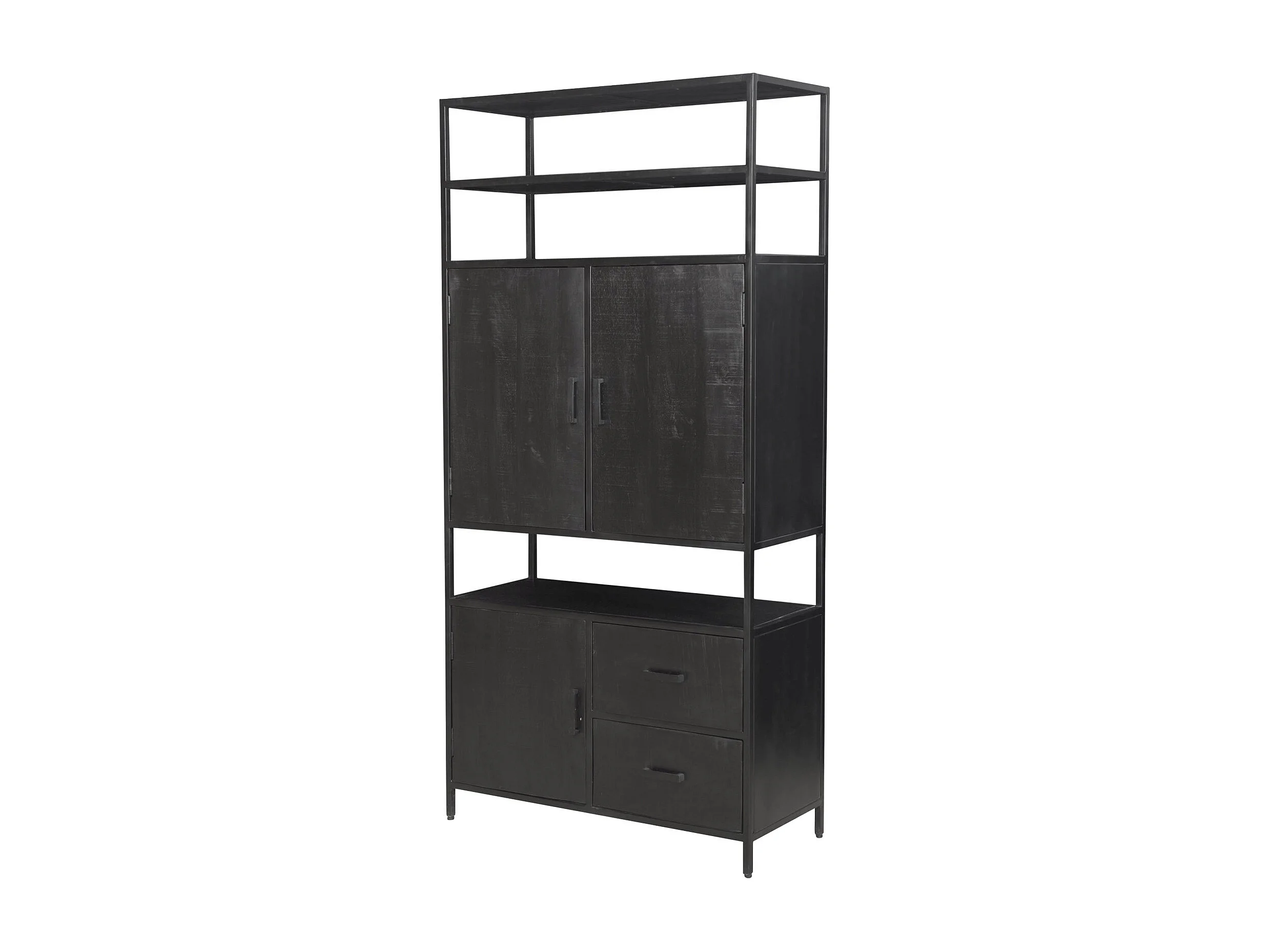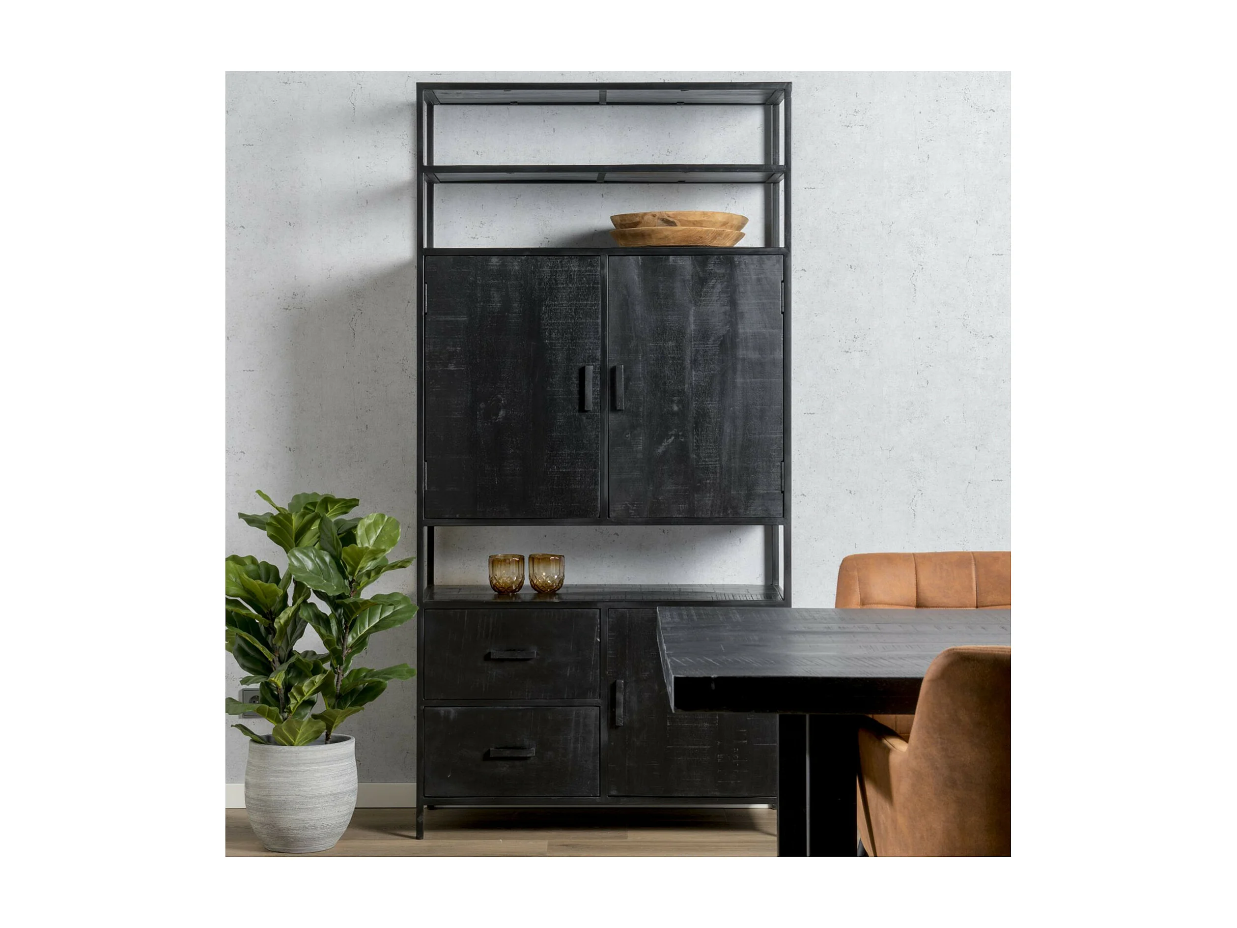 UZES-Aparador alto 3 puertas en madera de mango tinte negro y metal