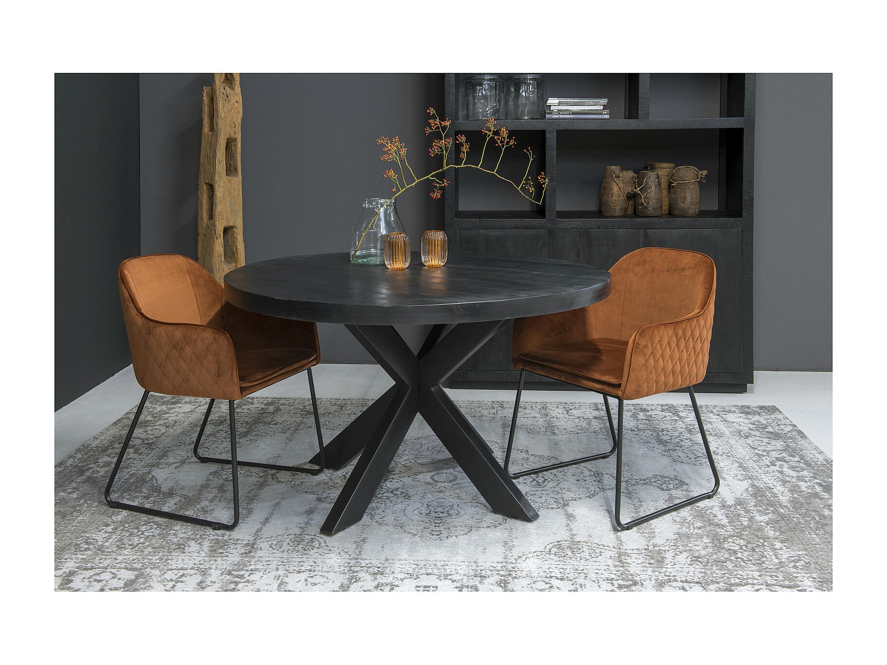 BANGALORE-Mesa de comedor redonda 4 personas 120 cm negra