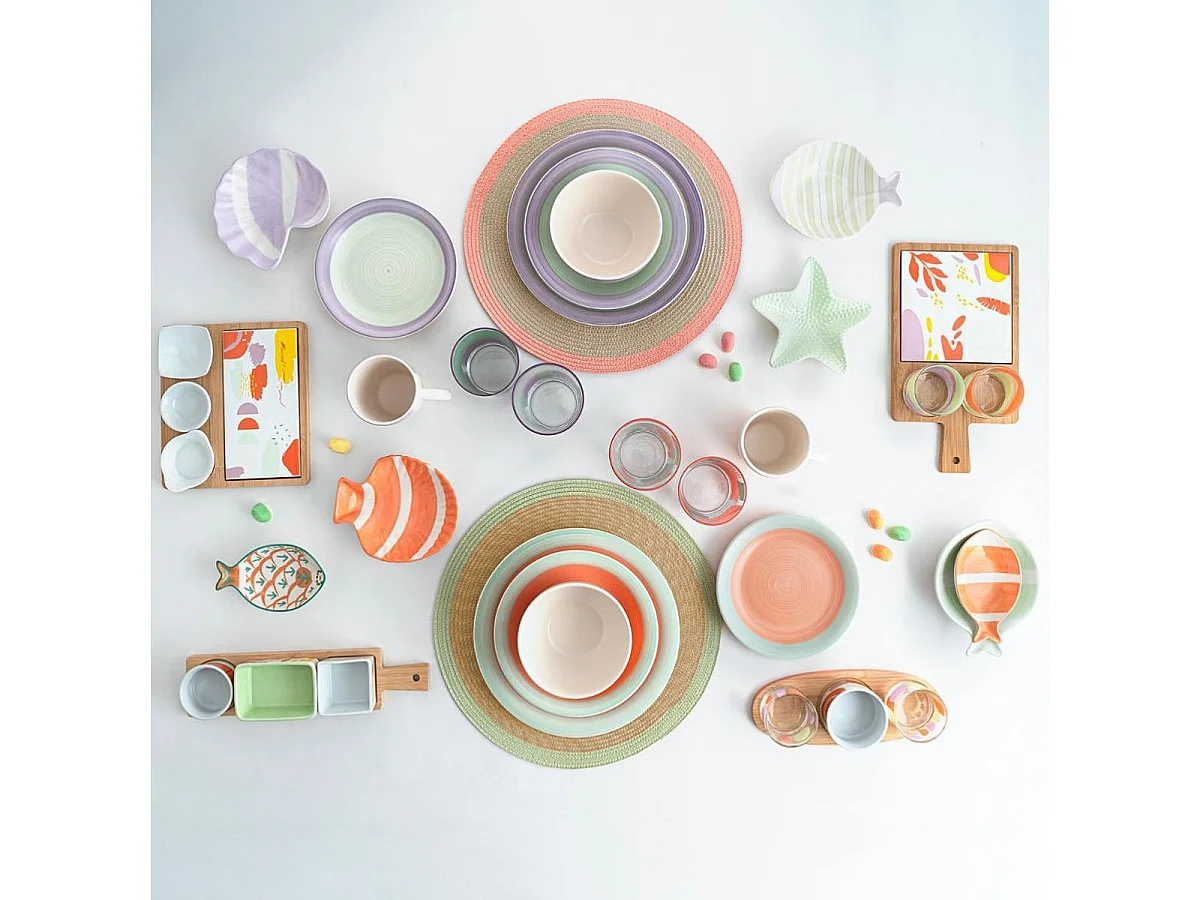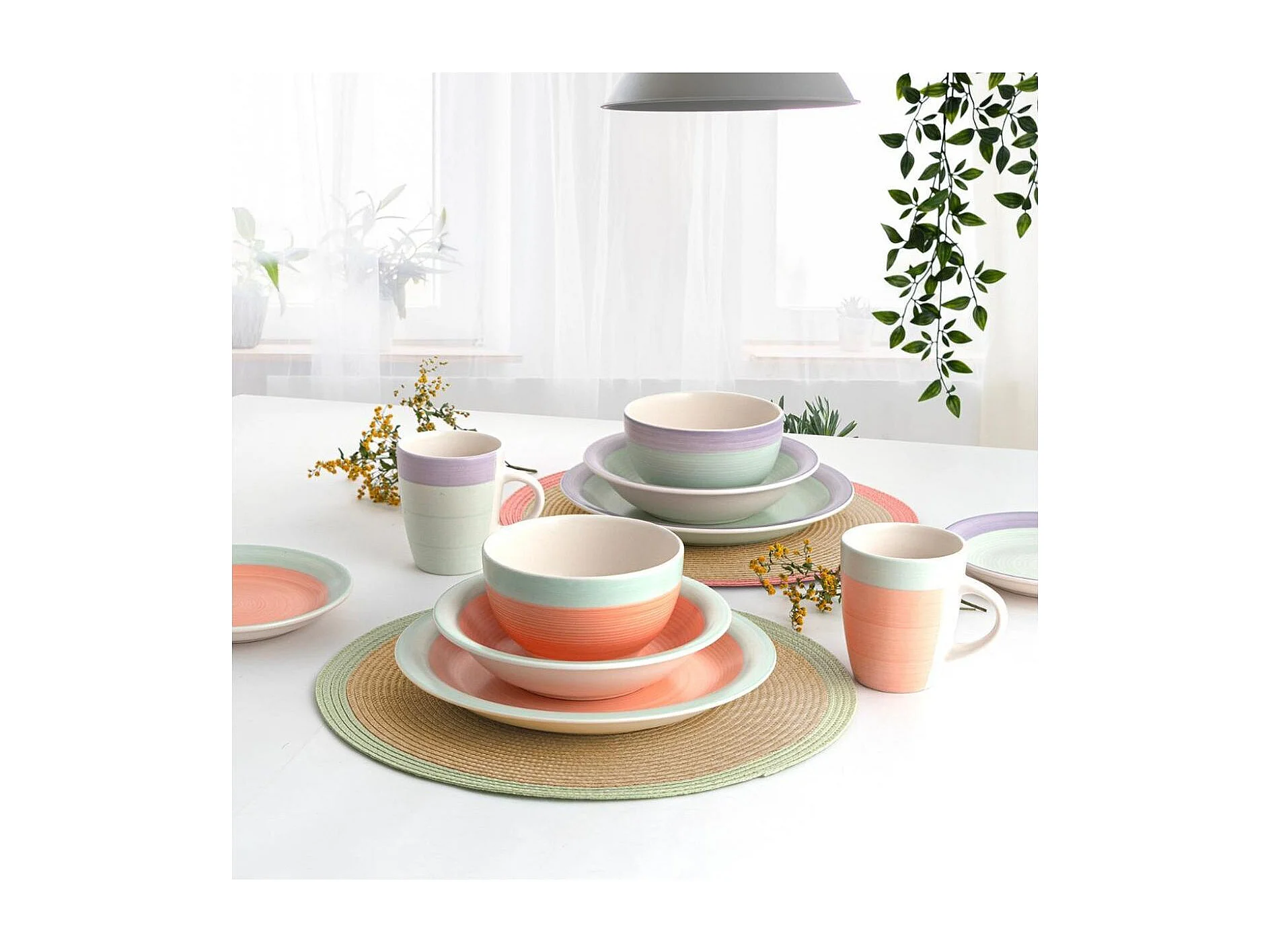 Vajilla Kaleido Quid 18 piezas 6 servicios cerámica verde/naranja