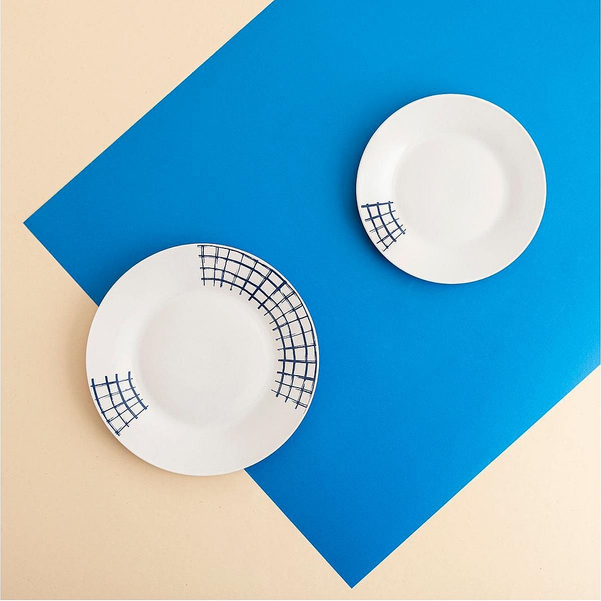 Vajilla Simetric Quid 18 piezas 6 servicios porcelana blanco/azul