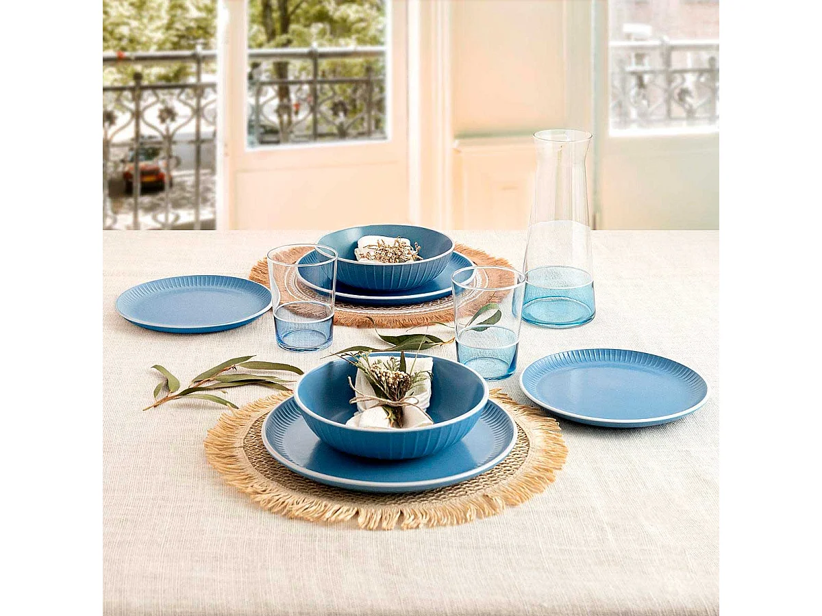 Vajilla Moana Bidasoa 12 piezas 4 servicios borde pintado azul