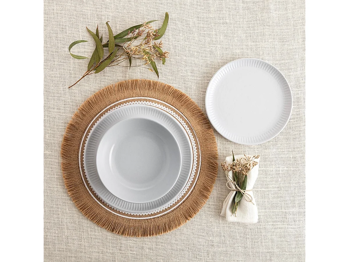 4 manteles individuales de yute trenzada gris oscuro Ø38 cm