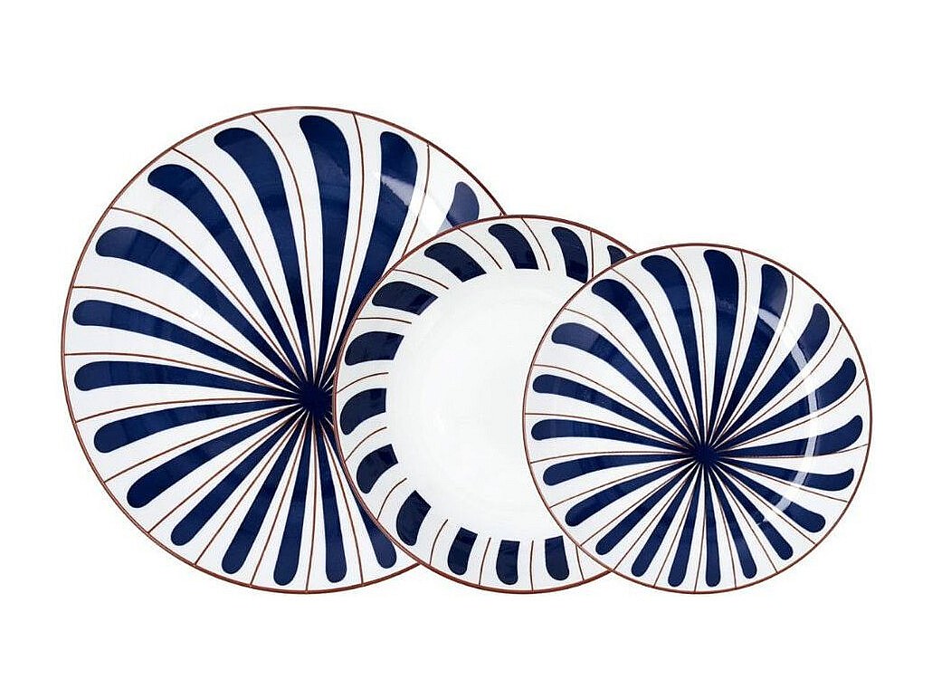 Vajilla Simetric Quid 18 piezas 6 servicios porcelana blanco/azul