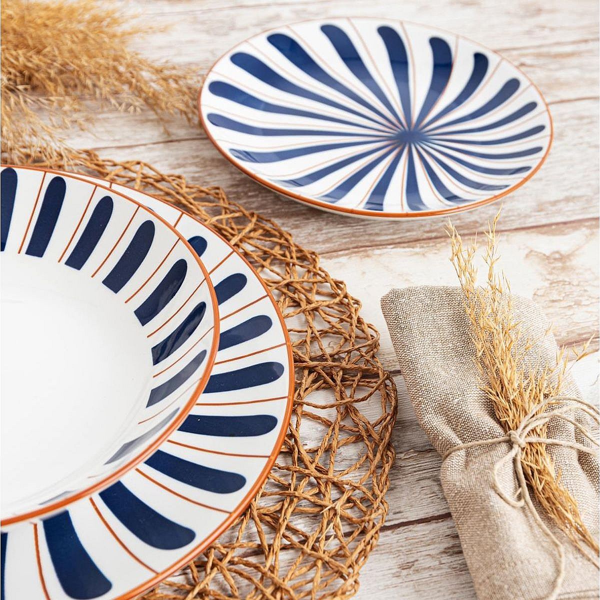 Vajilla Moana Bidasoa 12 piezas 4 servicios borde pintado azul