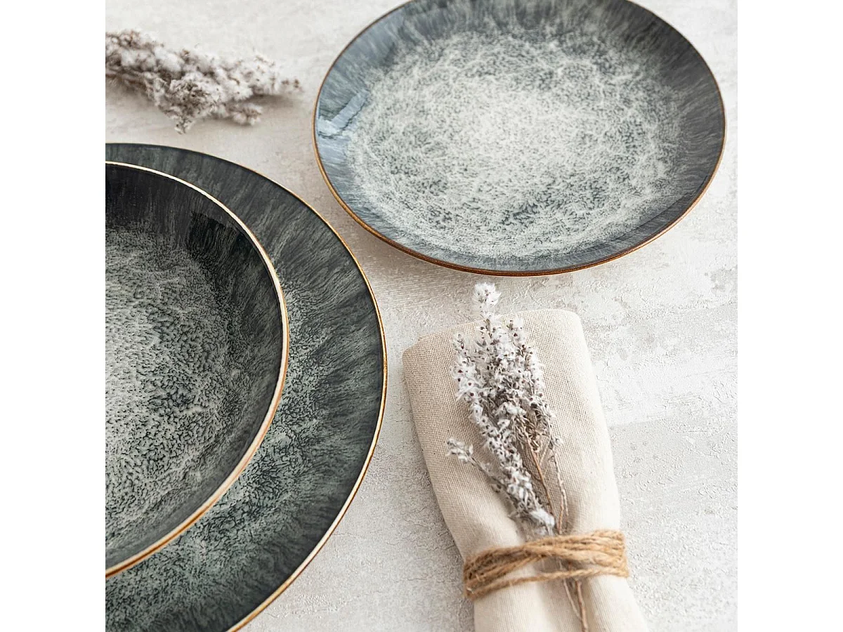 Vajilla Stela Bidasoa 12 piezas 4 servicios porcelana verde oscuro