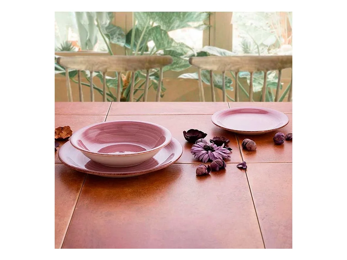 Vajilla Velvet Quid 18 piezas 6 servicios cerámica rosa