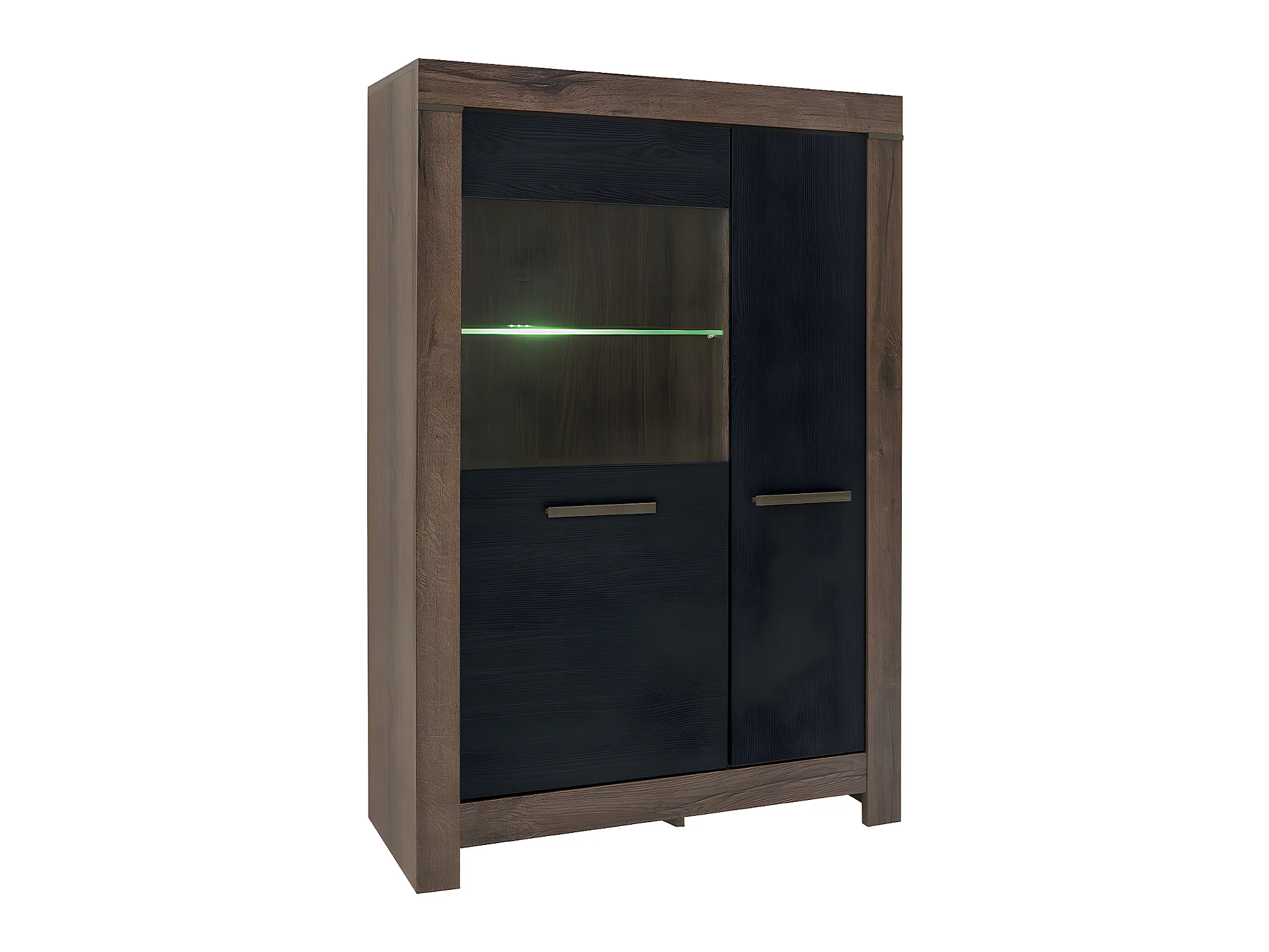 Vajillero bajo 2 puertas 2 cajones con LED Glenn Madera y Negro