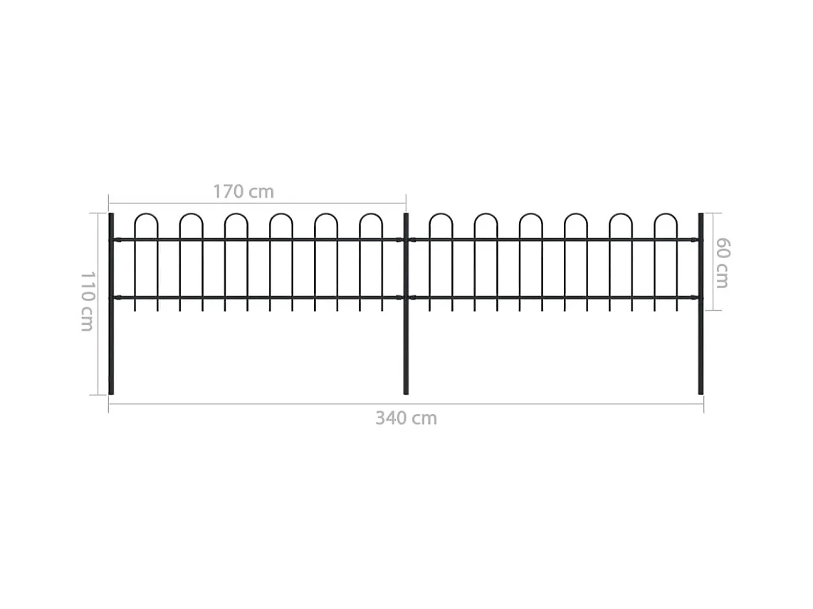 Valla de jardín con puntas de aro acero negro 3,4x0,6 m ES118341