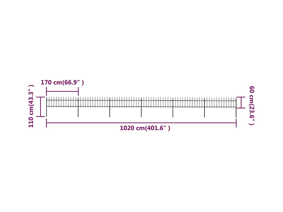 Valla de jardín con puntas de aro acero negro 10,2x0,6 m ES933770