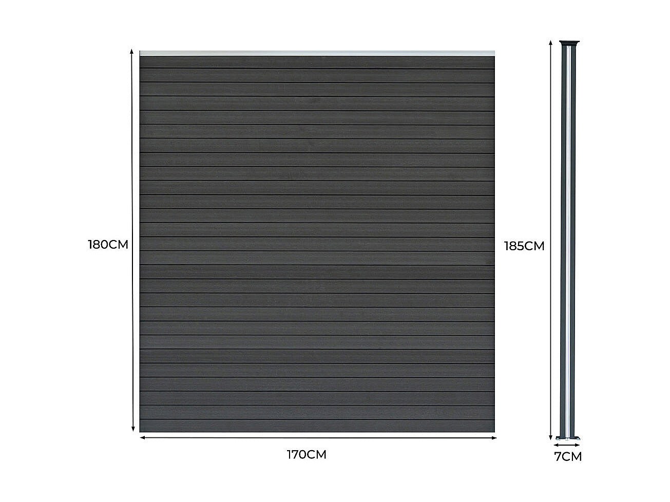 Vallas para exteriores de WPC y Aluminio - 1x Panel + 2 Postes | Gris