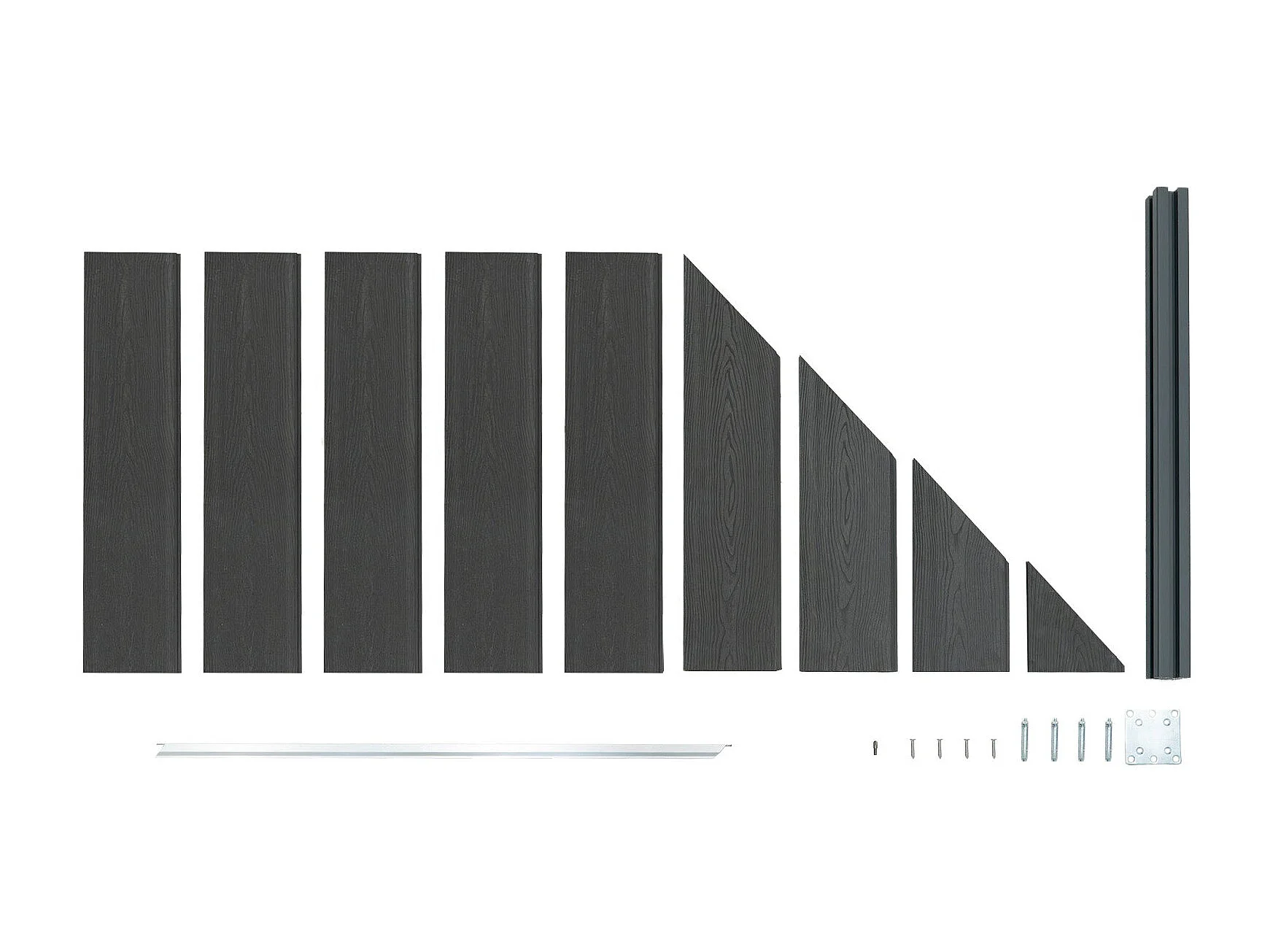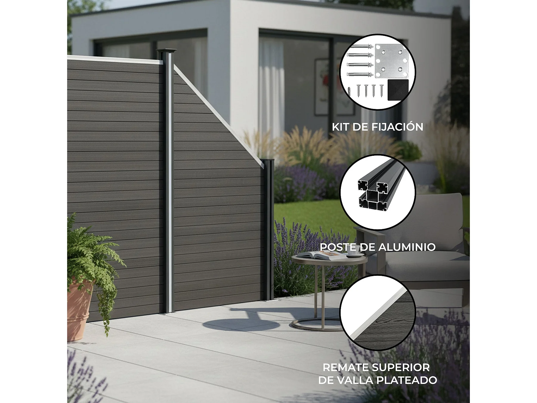 Vallas para exteriores de WPC y Aluminio - 1x Panel Oblicuo + 1x Poste | Gris