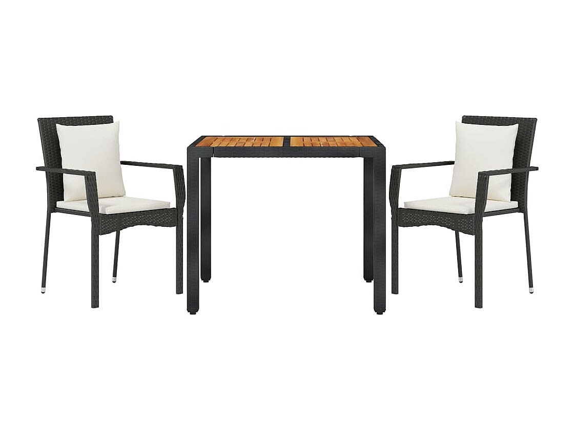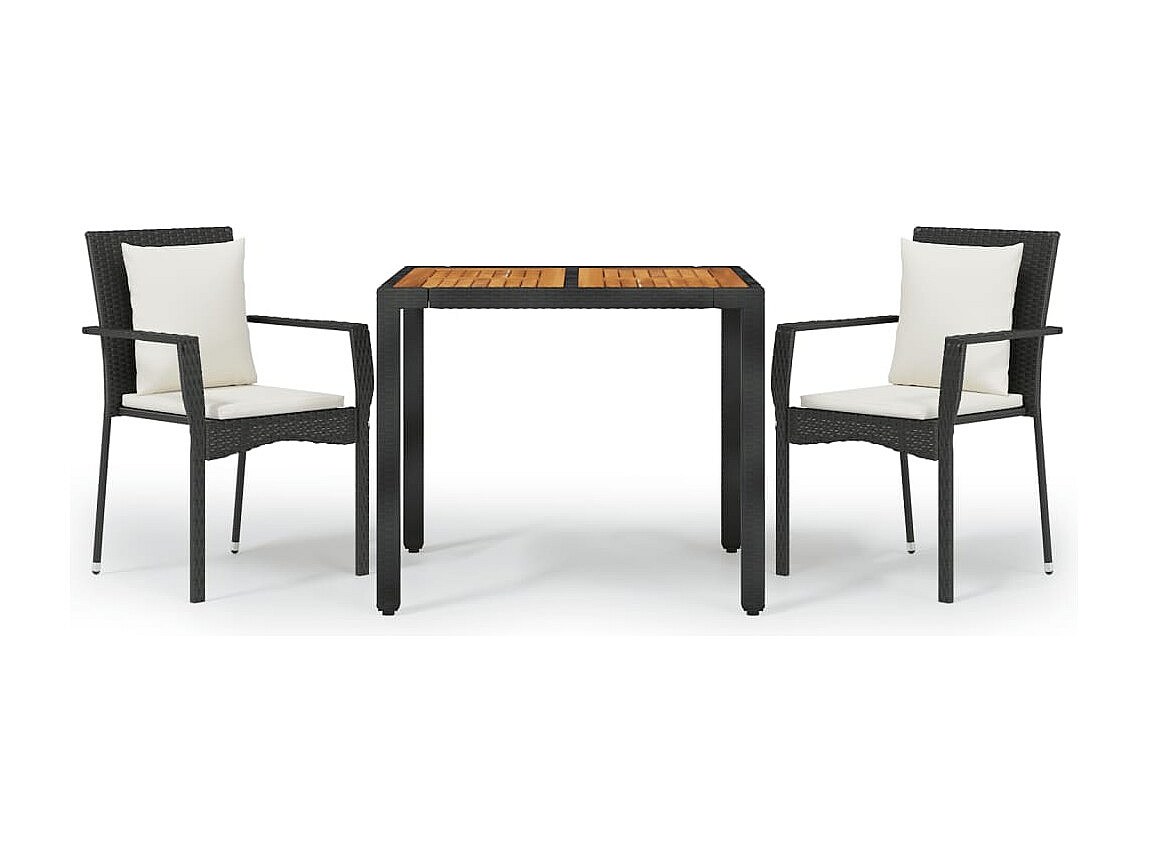 Garden Furniture - Juego comedor jardín 3 pzas madera acacia ratán sintético negro