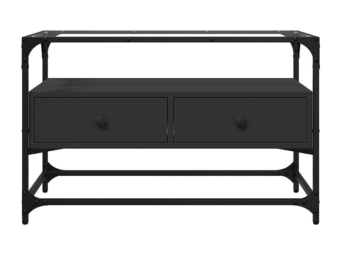 Varel Mueble TV cristal y madera ingeniería negro 80x35x51 cm