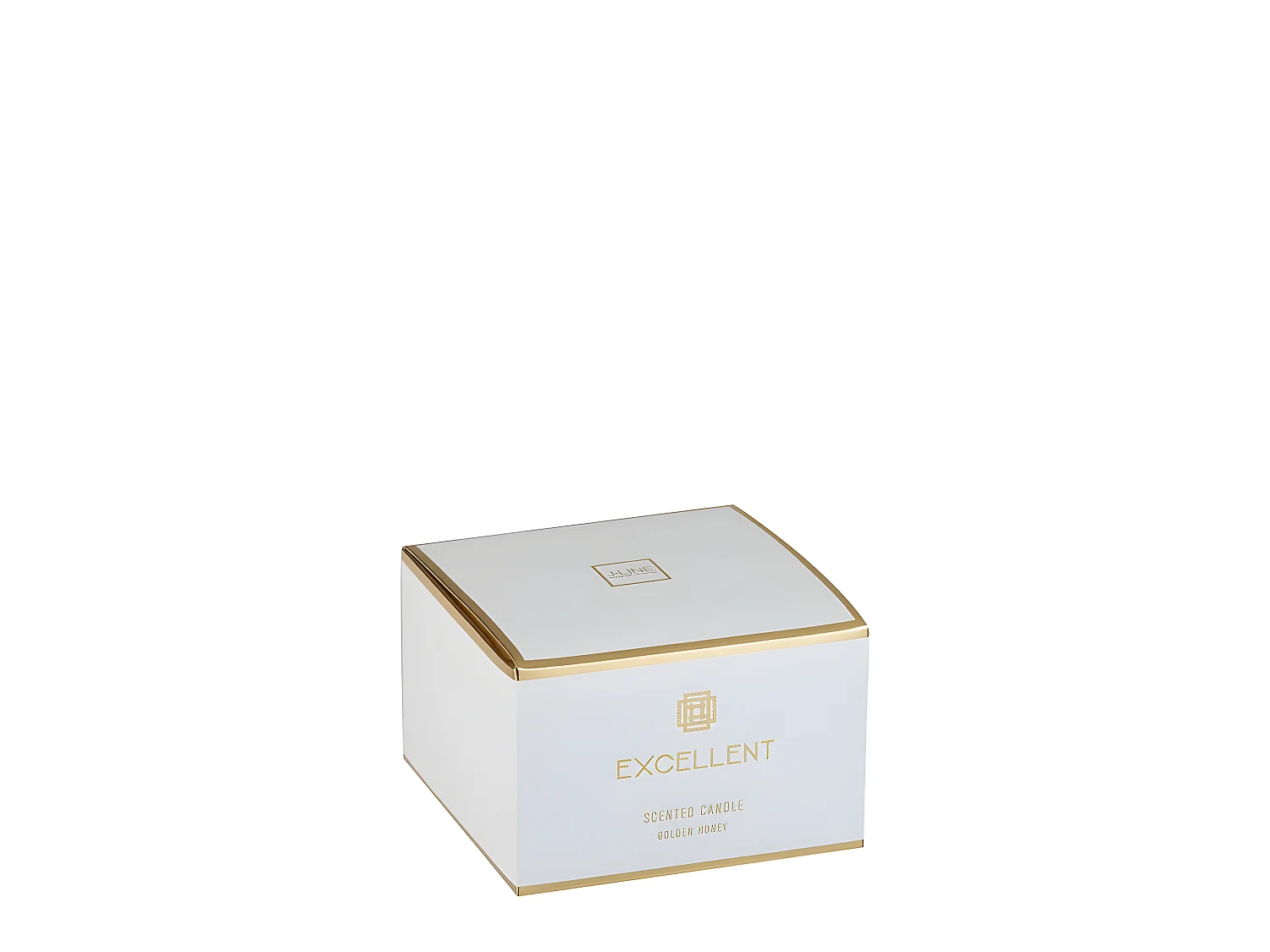 Vela perfumada de 40 horas en un frasco de vidrio dorado de 14x14x9.5 cm