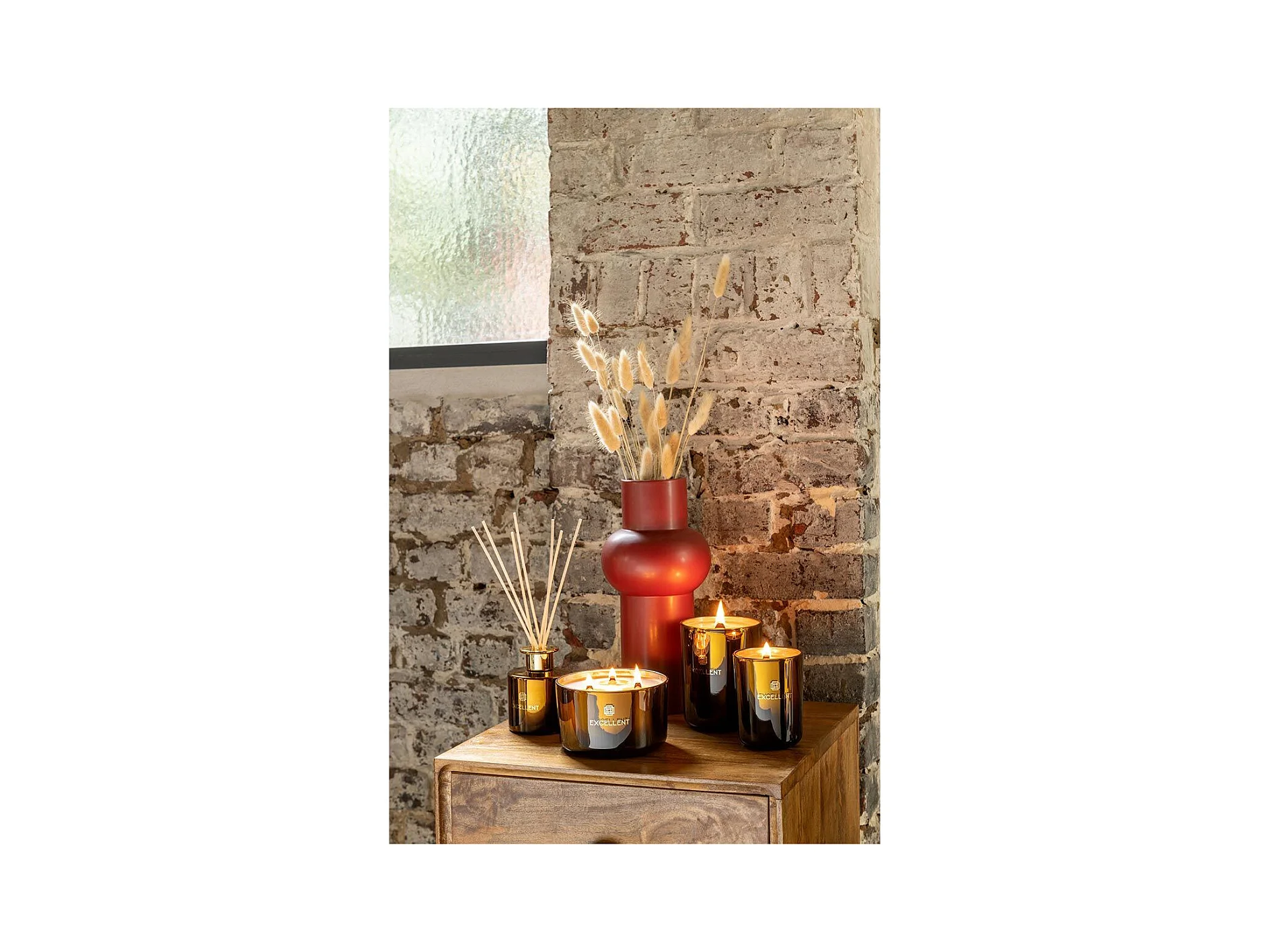 Vela perfumada de 80 horas en vidrio ocre de 11x11x15 cm
