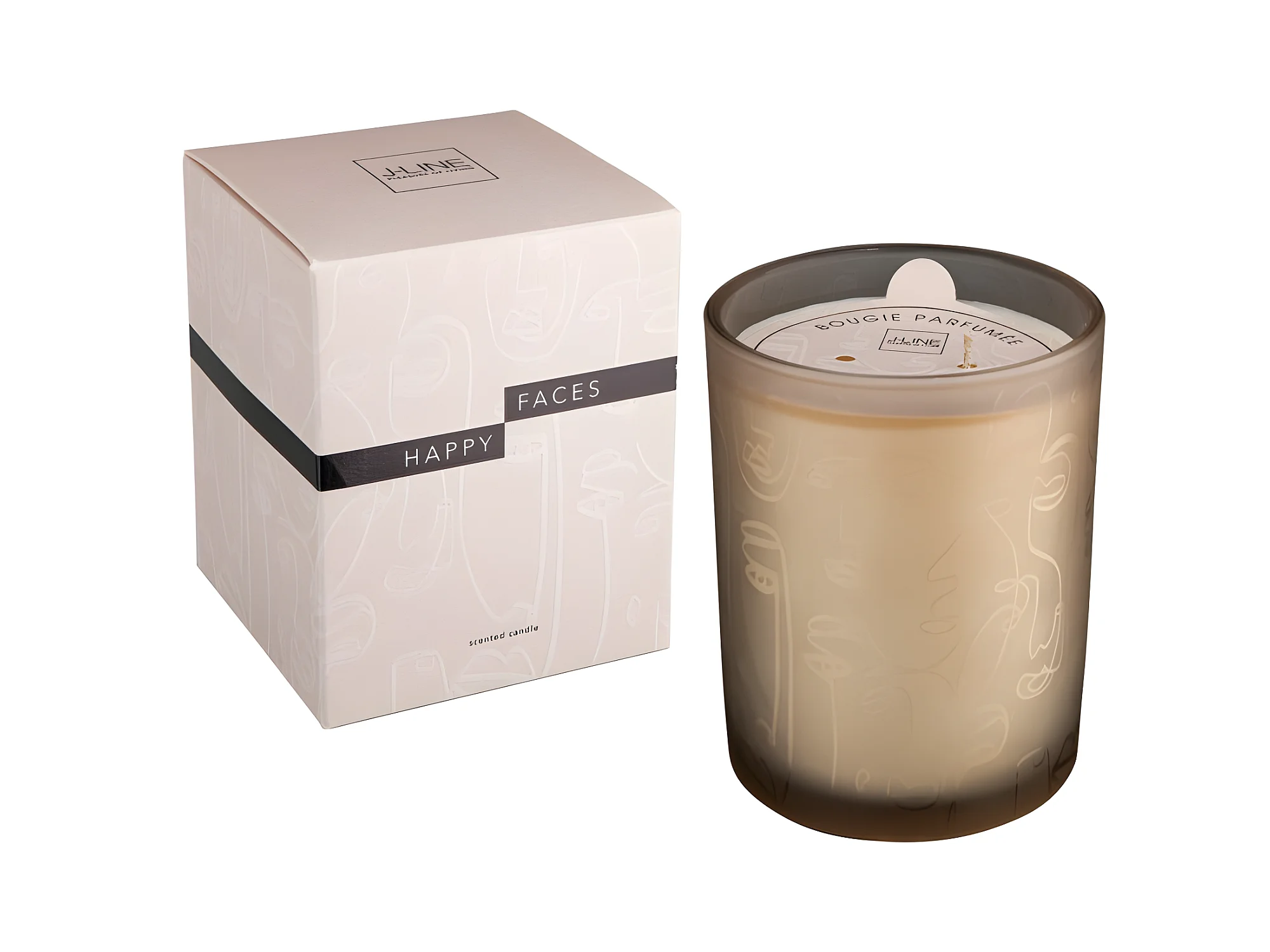 Vela perfumada Happy faces 70H en tarro de vidrio beige 9.5x9.5x12.5 cm