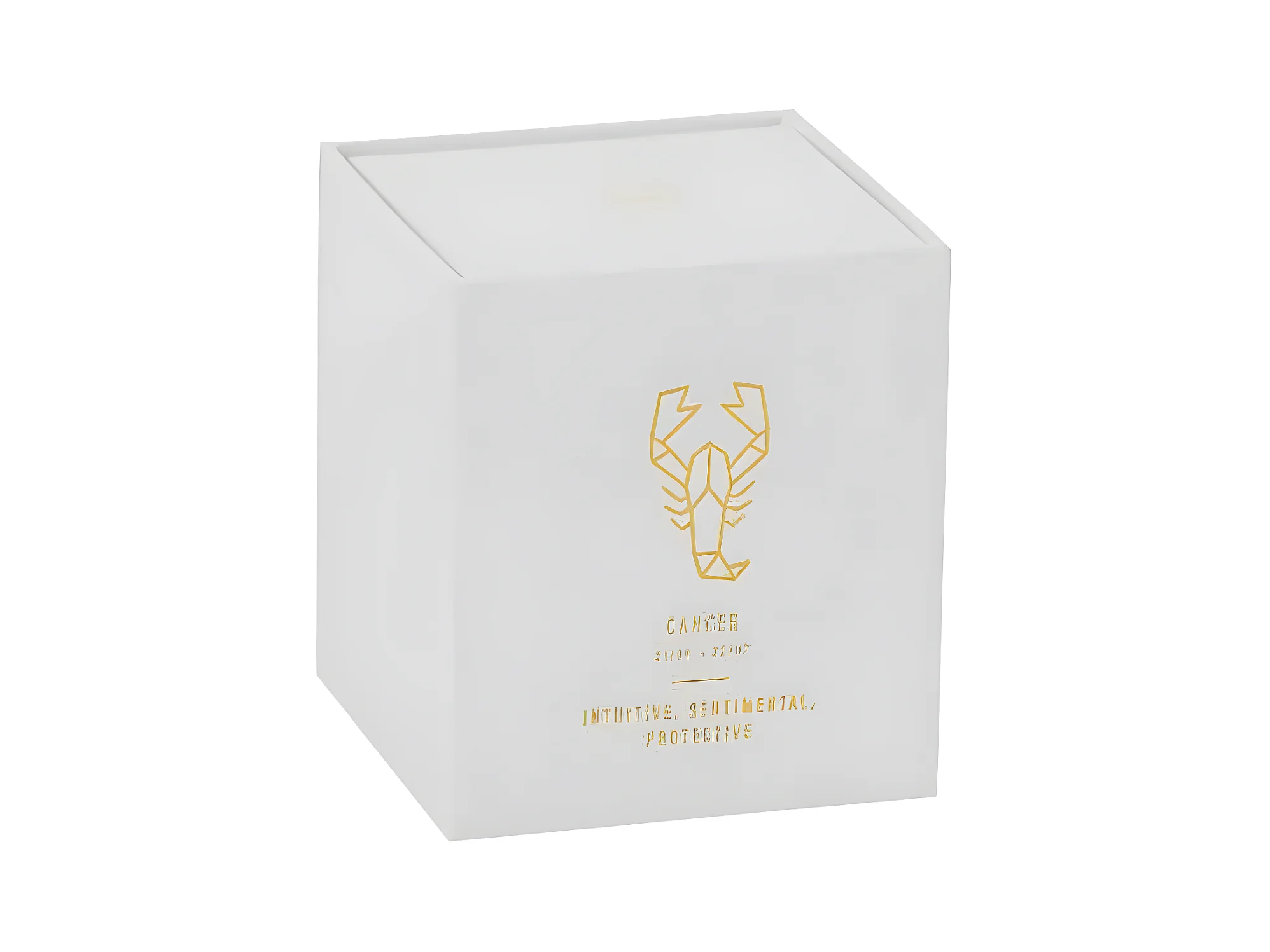 Vela perfumada signo cáncer 50H en tarro de vidrio blanco 8x8x9.5 cm