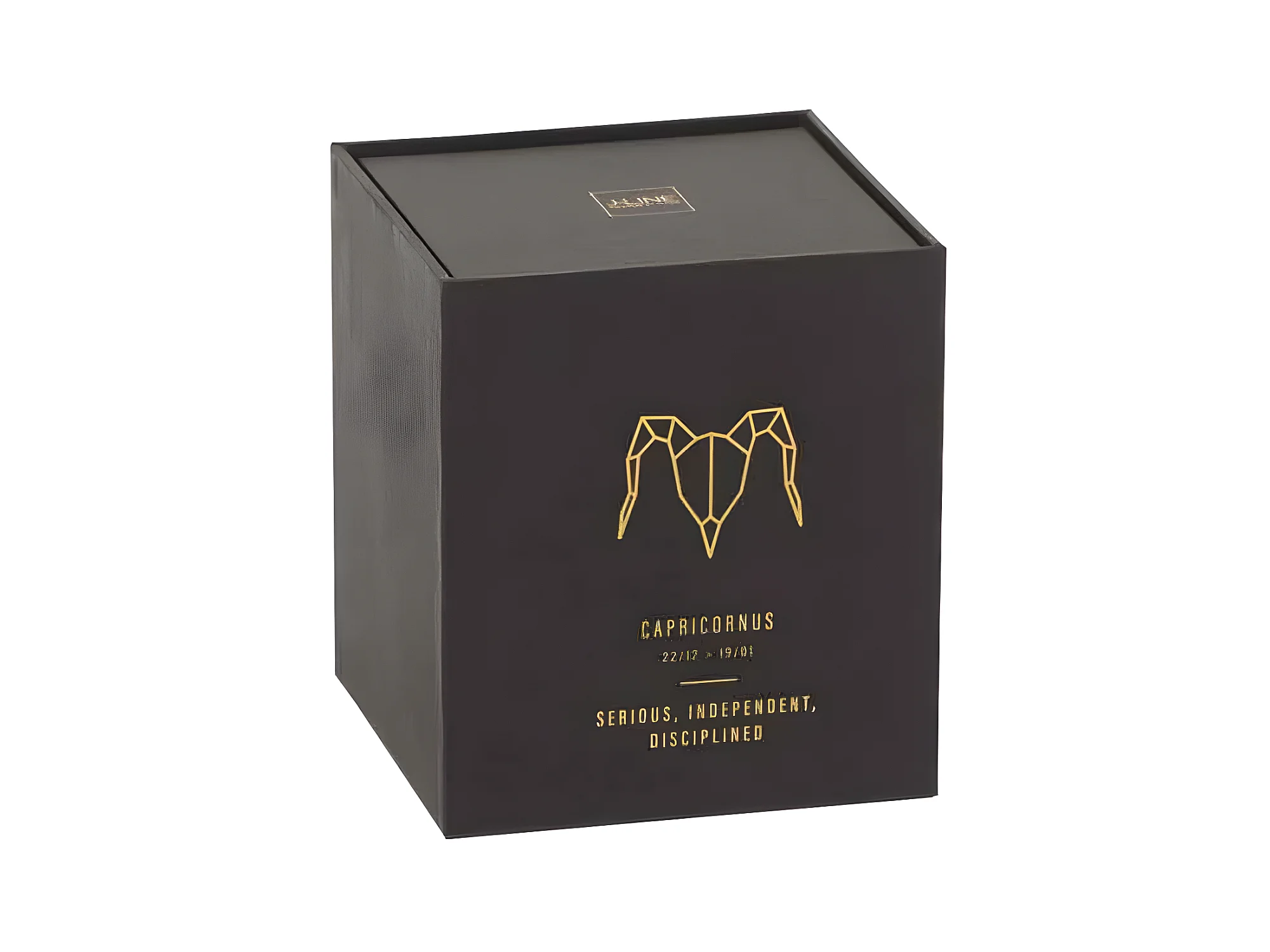 Vela perfumada signo Capricornio 50H en tarro de vidrio negro 8x8x9.5 cm