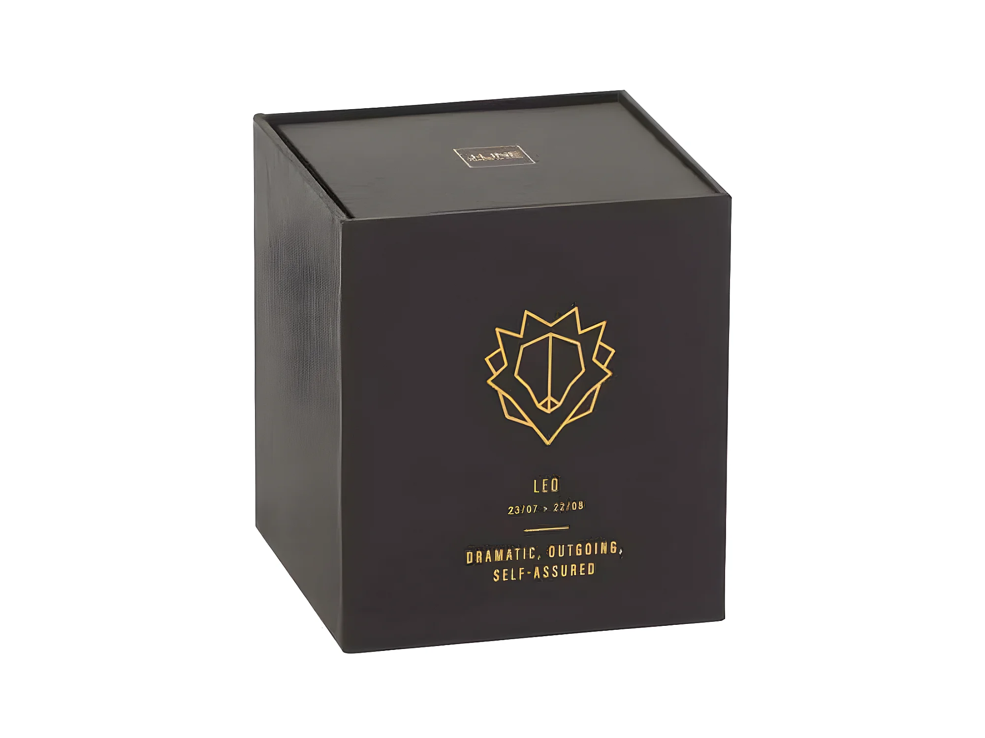 Vela perfumada signo de león 50H en tarro de vidrio negro 8x8x9.5 cm