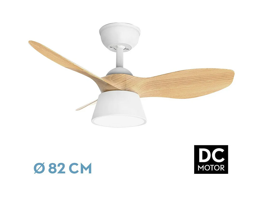 Ventilador Dc Cubico Blanco Haya Led 3 Posiciones Con Memoria