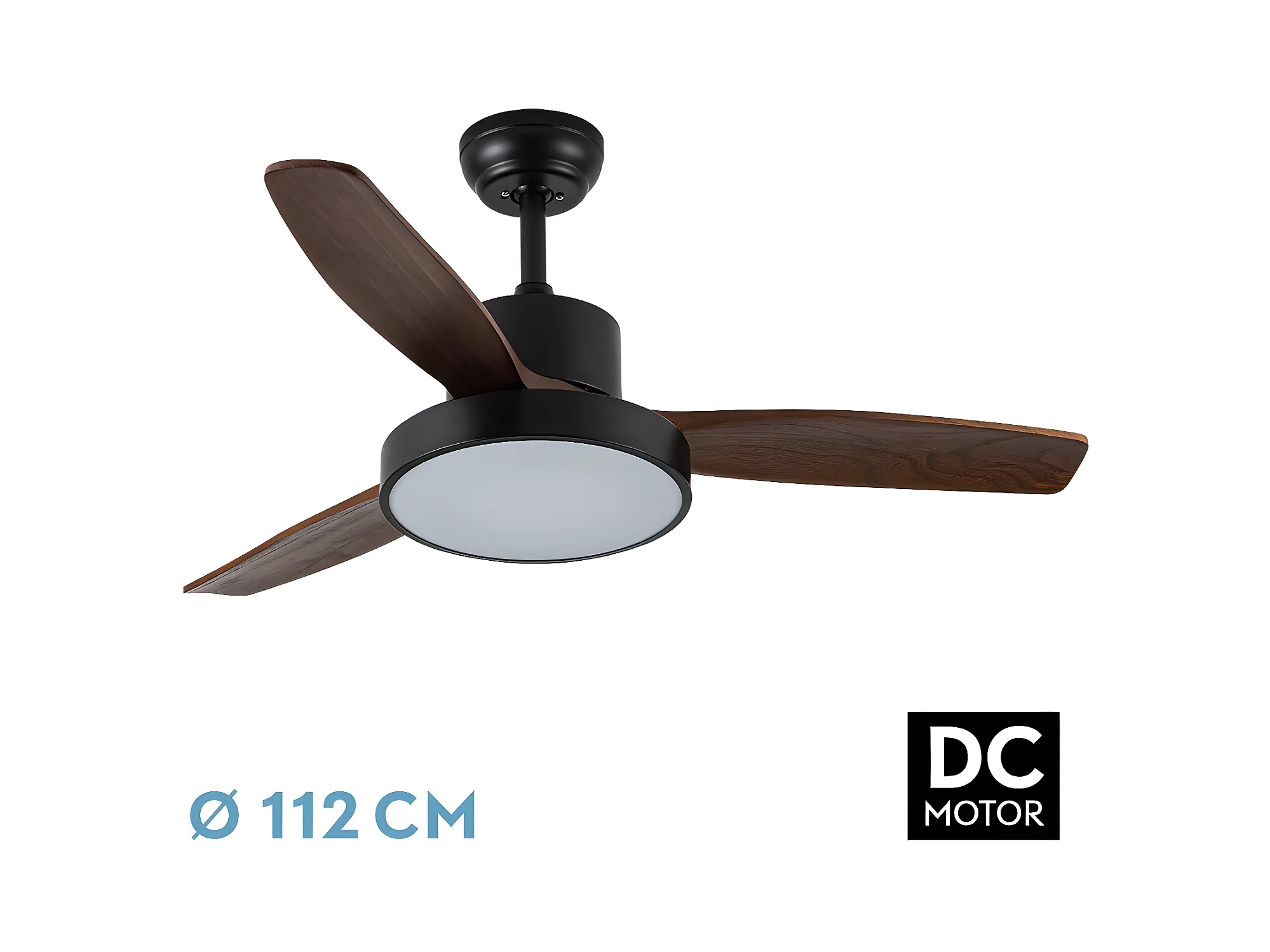 Ventilador Dc Kavala Negro Roble Led Mando Distancia Cct Regulable