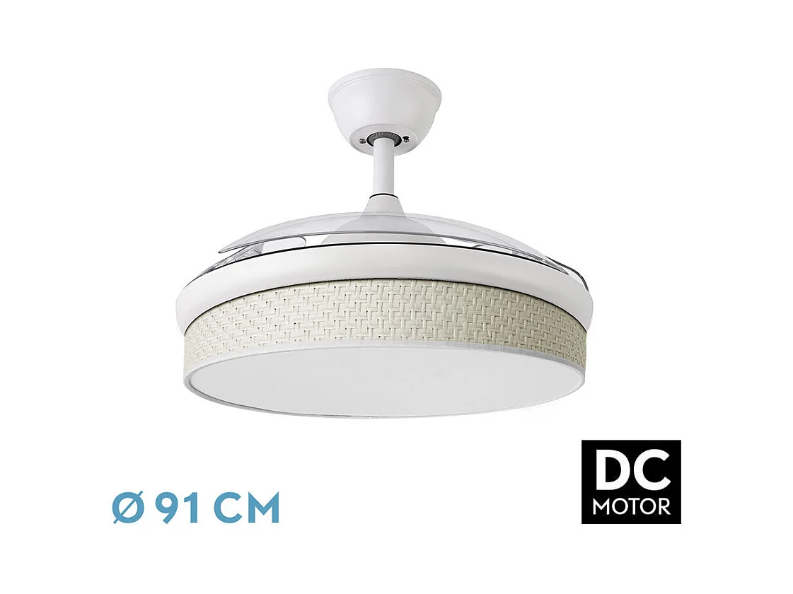 Ventilador DC Moda blanco/cañizo claro LED 91 cm con mando y memoria